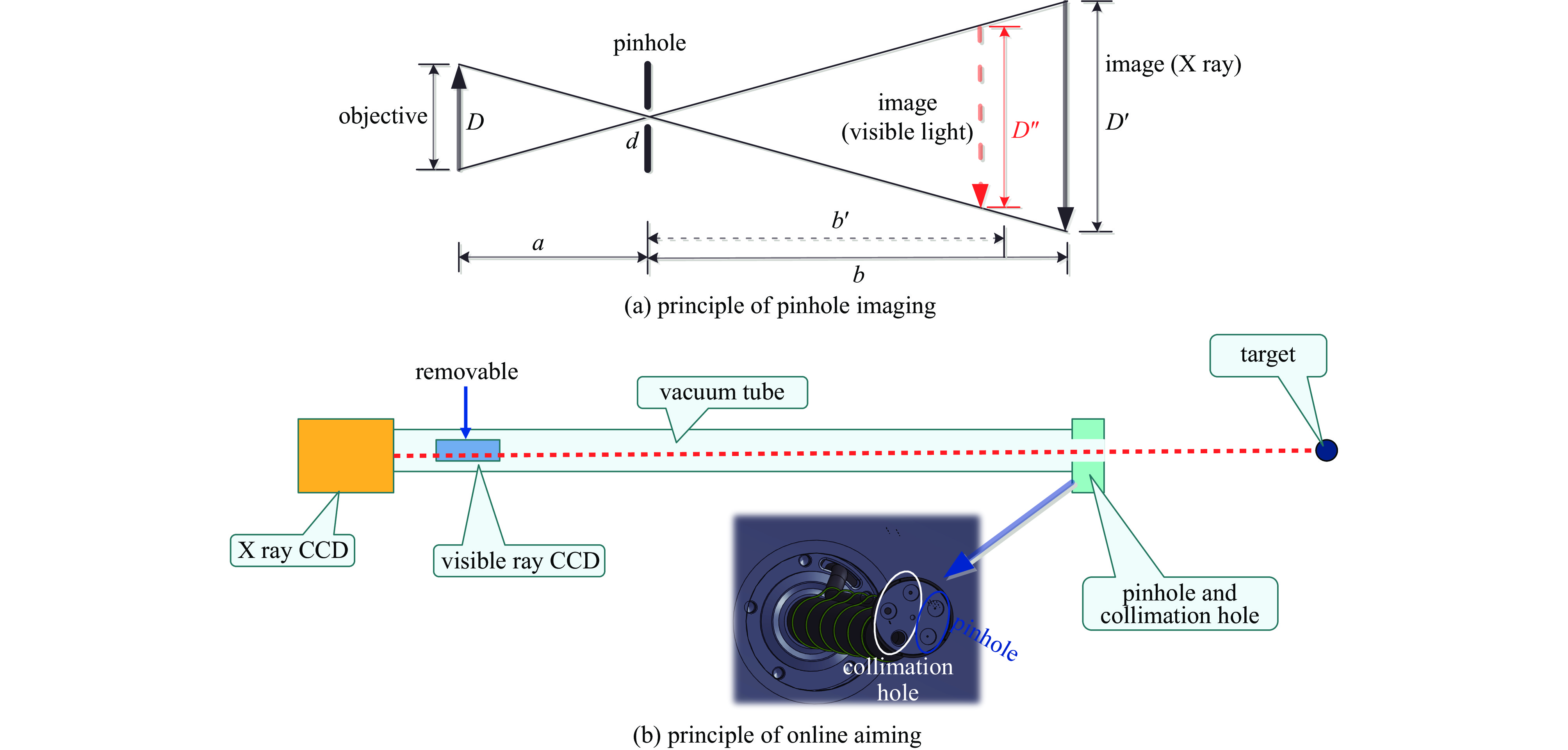 基于针孔成像原理的针孔相机结构简单、使用方便,在高能量密度物理实验中常用于监测激光与靶相互作用区域的形状与大小。为适应星光-Ⅲ激光装置的靶室结构与打靶方式,本研究研制了一种用于该装置的X射线在线瞄准针孔相机,以解决传统针孔相机无法在线瞄准导致的信号采集失败问题。相机采用可见光CCD与X光CCD一体化设计,通过优化调节结构,实现了俯仰与侧摆方向的高精度在线指向调节,调节精度达15 μm。利用可见光CCD实时采集靶面图像,并结合精密调节盘上的不同孔径瞄准孔,实现了X光针孔相机的高精度在线瞄准。在星光-Ⅲ激光装置上对该相机进行了激光打靶考核,实验结果表明,其性能满足该装置的使用要求。