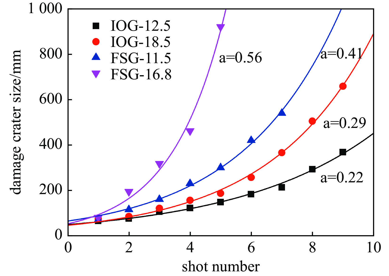 光学元件的使用寿命是决定高能激光器稳定运行的重要因素。针对传统光学玻璃在高能激光系统中使用寿命较短的缺点,研发了钝感光学玻璃。钝感光学玻璃具有激光损伤增长阈值高和激光损伤增长速度慢的优点,因而具有较长的使用寿命。基于355 nm激光开展了钝感光学玻璃损伤增长的研究。结果表明:钝感光学玻璃的激光损伤增长阈值为7~12 J/cm2,零概率激光损伤增长阈值为7 J/cm2,是同样实验条件下熔石英玻璃的2倍。钝感光学玻璃在较高激光辐照能量下(>12 J/cm2),呈指数型增长,增长速度较熔石英玻璃慢,增长系数仅为熔石英的0.53倍。钝感光学玻璃的研究,为解决高能激光装置中三倍频光学玻璃使用寿命短的问题提供了一种新的思路。