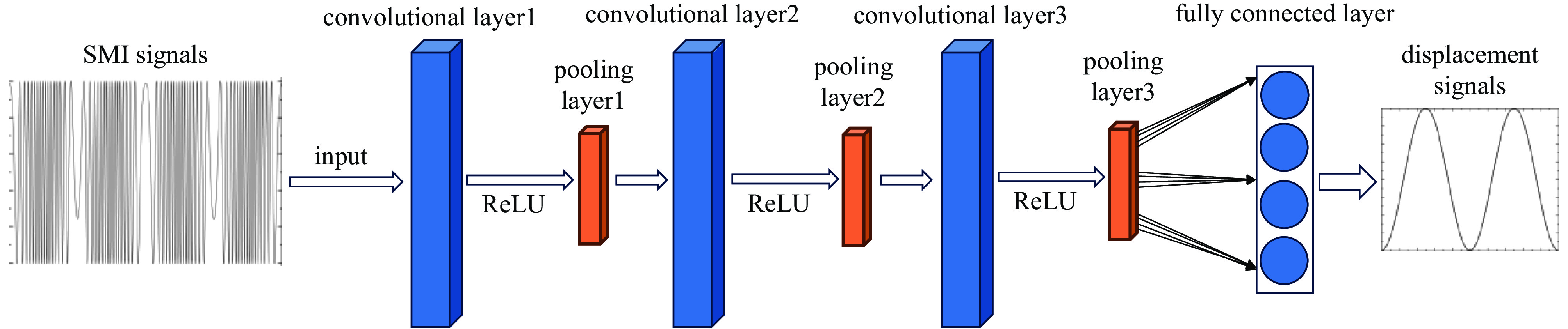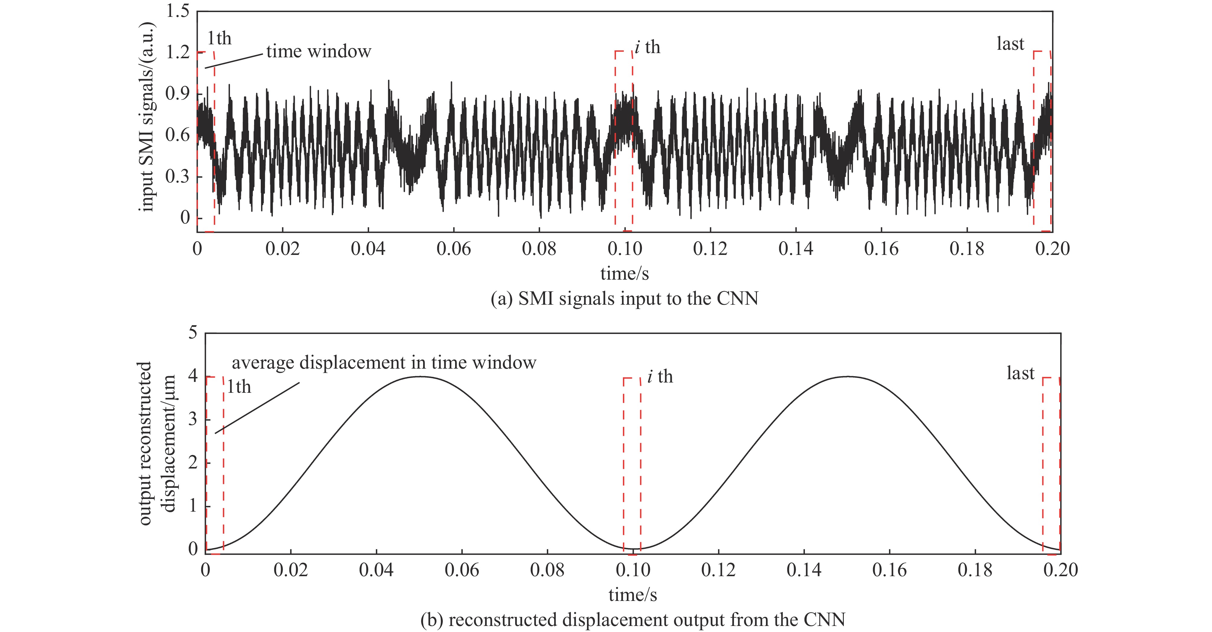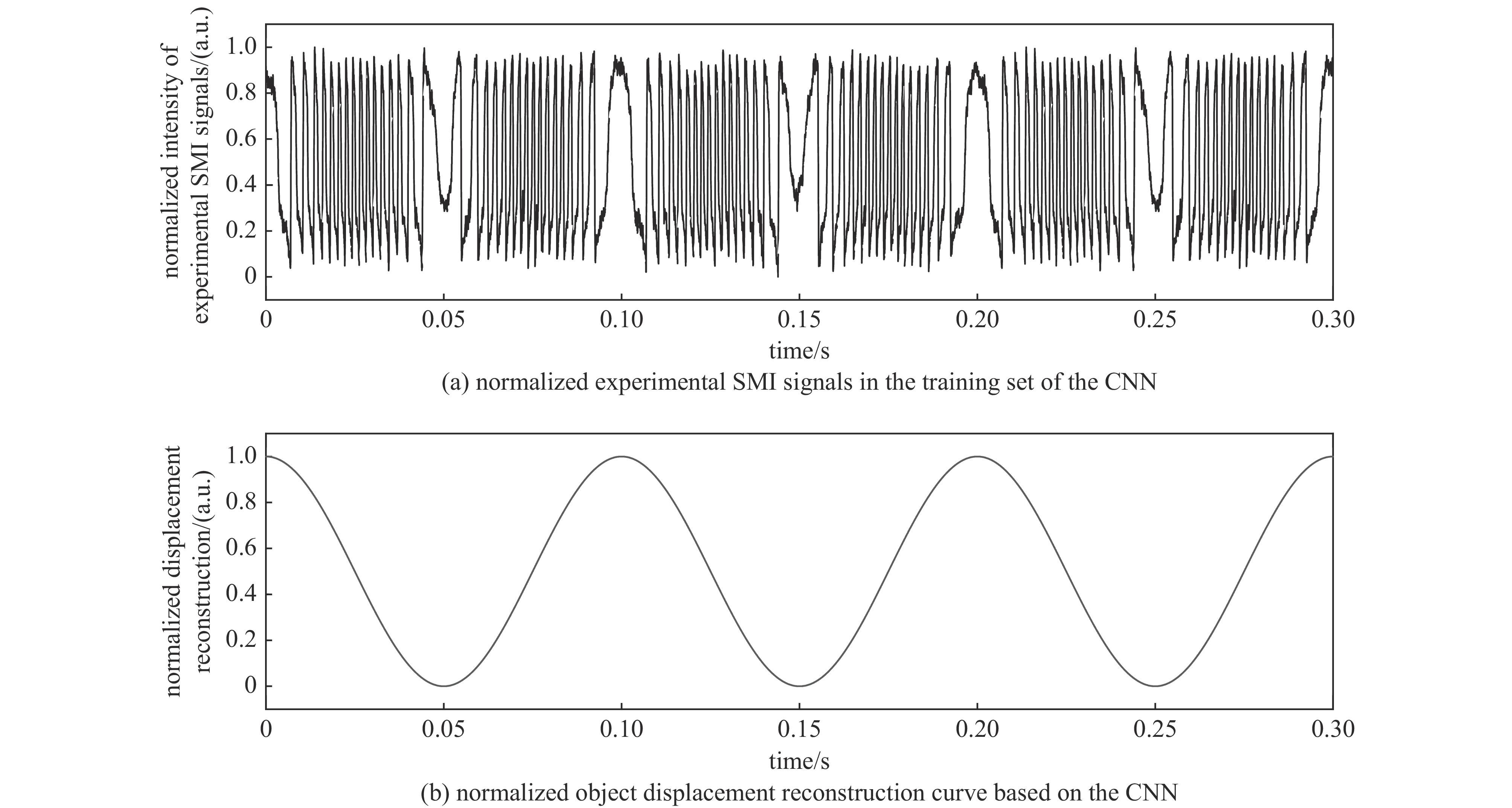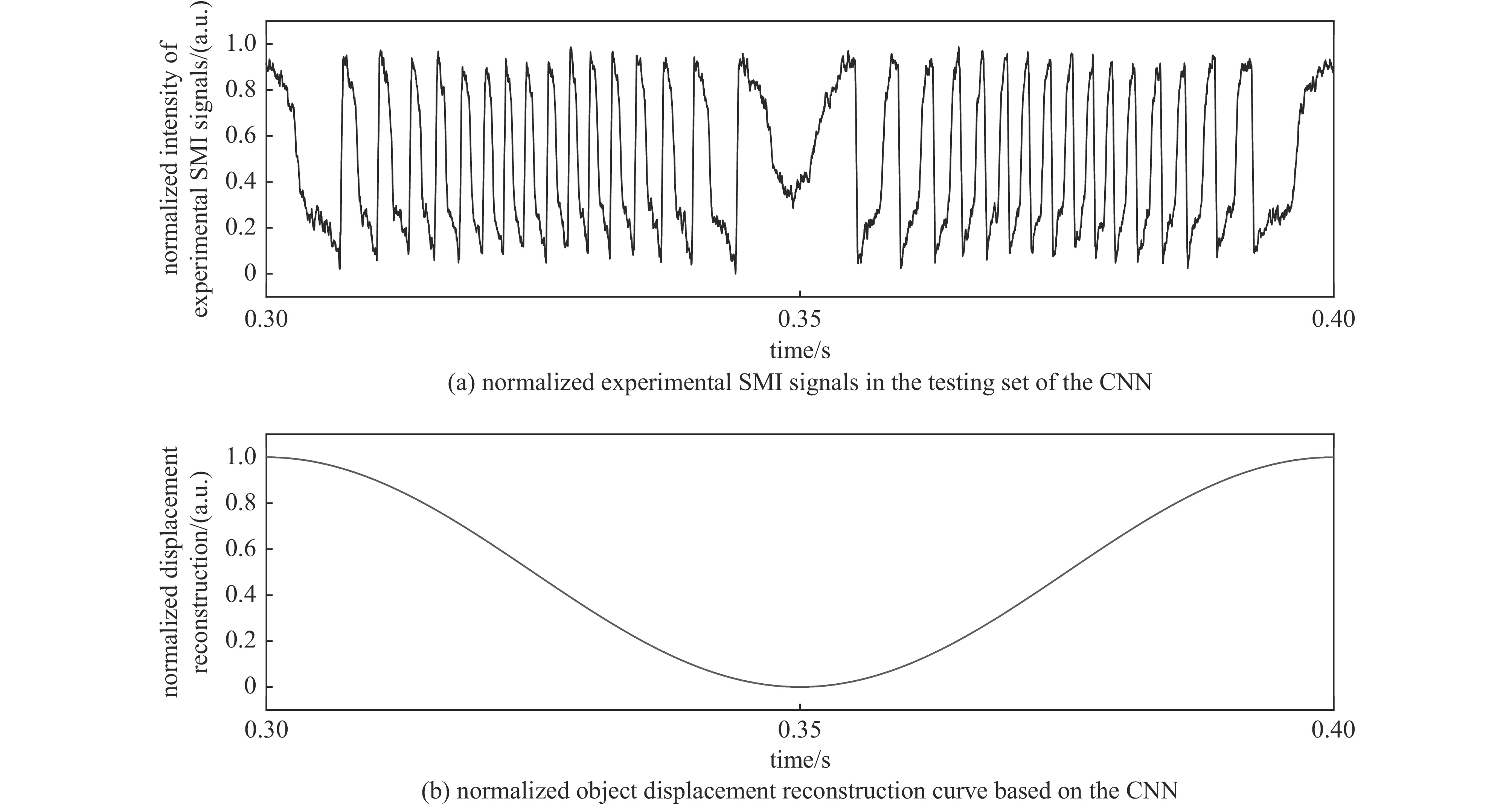 。理论仿真与实际实验结果均表明,卷积神经网络通过分析SMI信号的时序片段,能够实现半导体激光自混合干涉信号的微米量级位移重构。