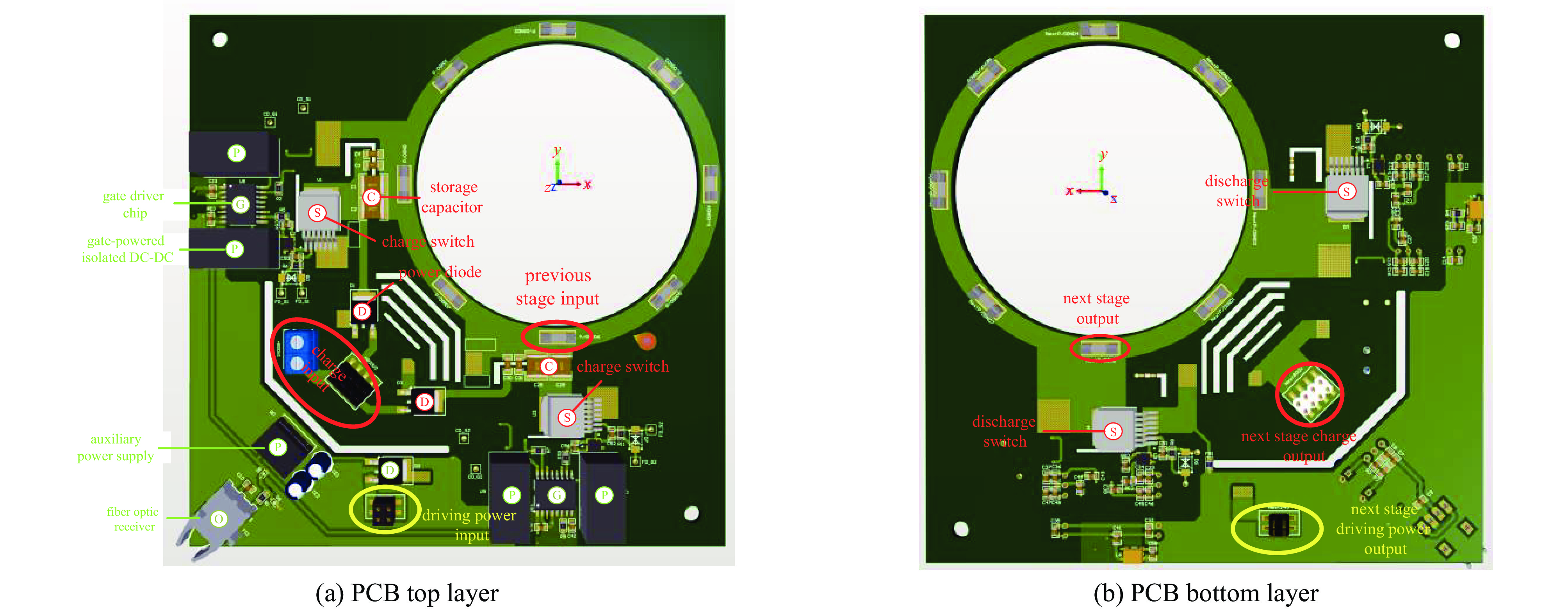 针对全固态 Marx 脉冲发生器电路中隔离驱动部分体积较大、成本高及集成性差等问题,提出了一种基于PCB无磁芯变压器的同步隔离驱动方案,并研制样机验证了驱动可行性。首先对无磁芯变压器进行建模,并借助Q3D电磁仿真软件提取关键电磁参数,结合实测数据进行对比,验证了模型准确性。通过对电路运行过程的理论分析与 LTspice 仿真,阐明了该方案在驱动时序和工作机理方面与传统磁芯变压器驱动存在的显著差异。最后搭建实验平台对所提出的驱动系统进行测试,结果表明该方案具备宽动态范围驱动能力、优异的电气隔离性能和良好的 PCB 工艺兼容性,验证了其可行性与工程应用潜力。