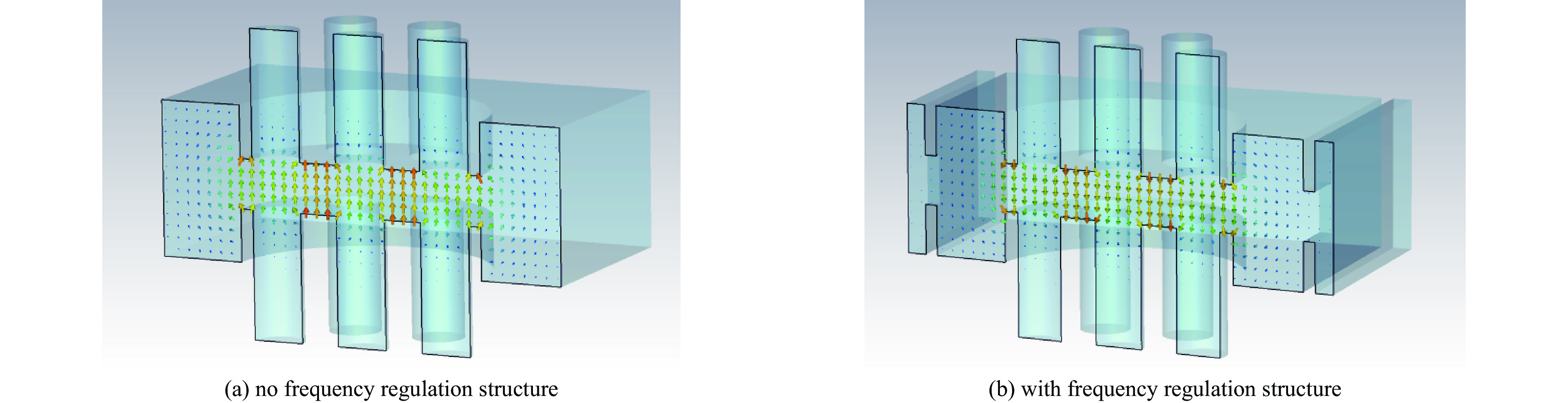 谐振腔作为速调管的重要组成部分,其特性对速调管的性能具有决定性影响。在高波段速调管领域,受加工工艺和焊接技术的限制,多采用一体化加工的矩形谐振腔。传统的一体化矩形谐振腔在进行频率调节时容易产生谐振腔频率偏差,频率偏差较大时会导致谐振腔无法使用等问题。据此,提出了一种实用新型频率调节结构。将该结构应用于矩形谐振腔时,可实现大幅度的频率调节,有效补偿因零件加工公差导致的频率偏差。应用此结构后,频率调节操作变得简便、快速,可以显著提升速调管的研制效率,为高波段速调管的优化与发展提供了新的技术路径。