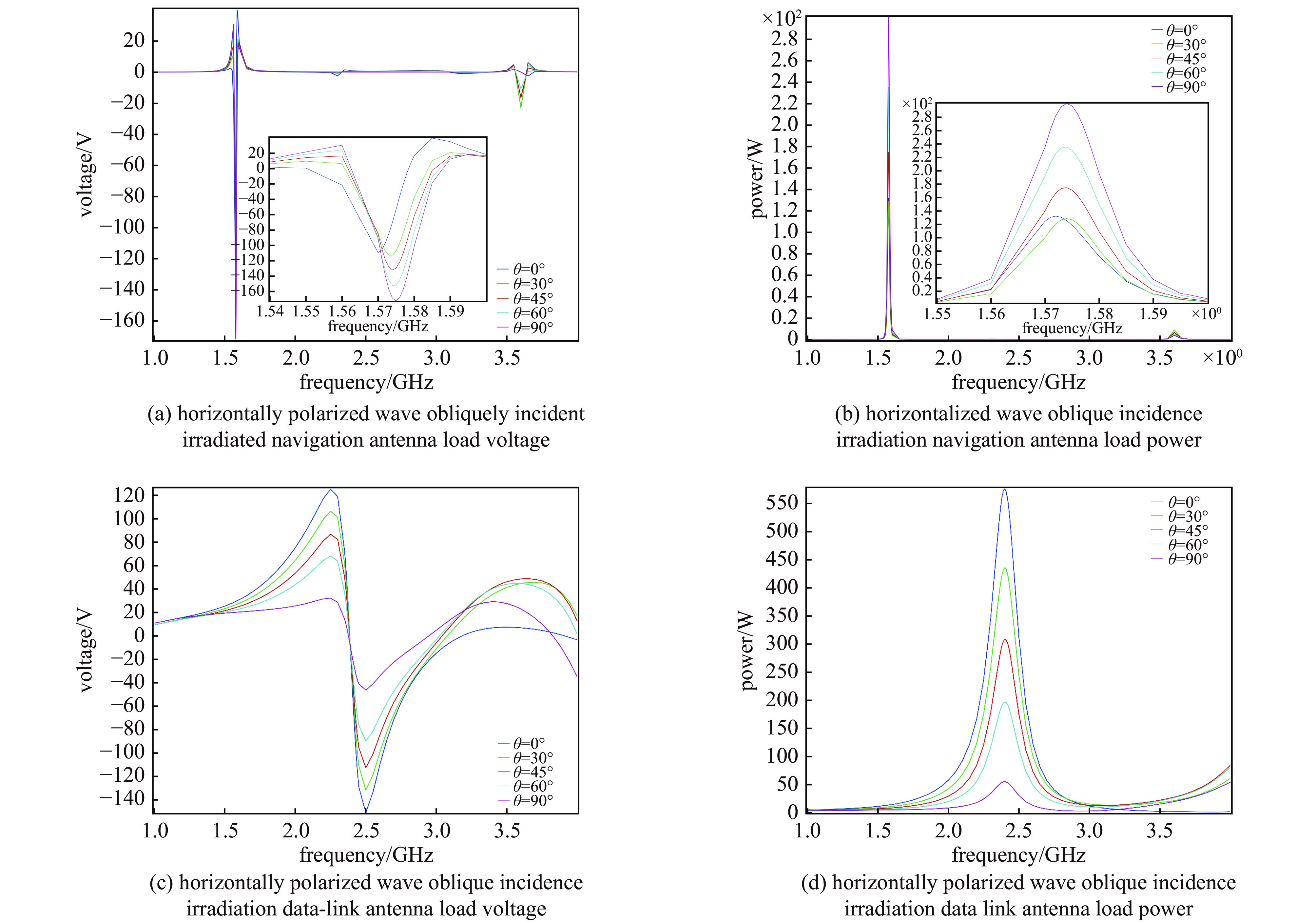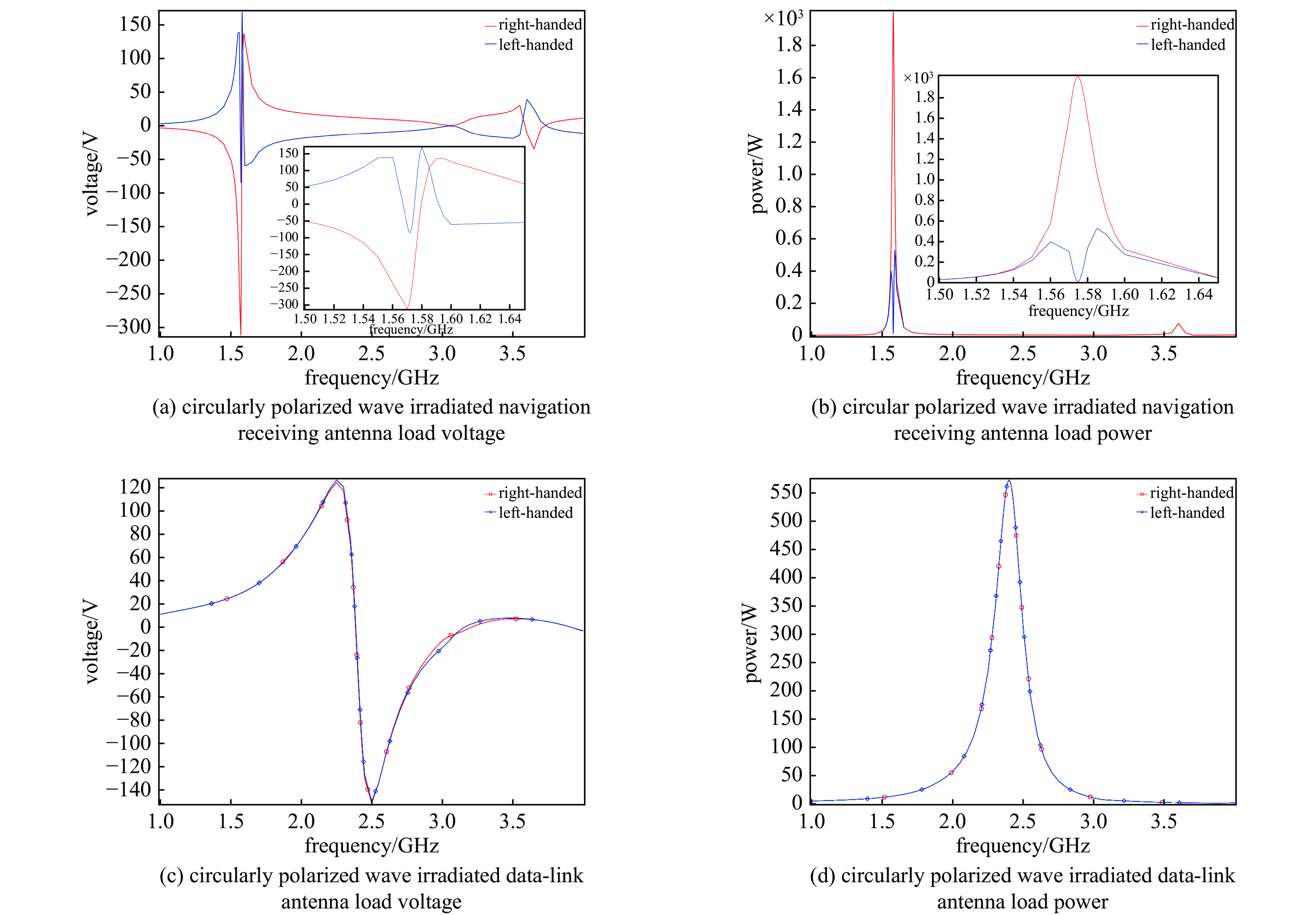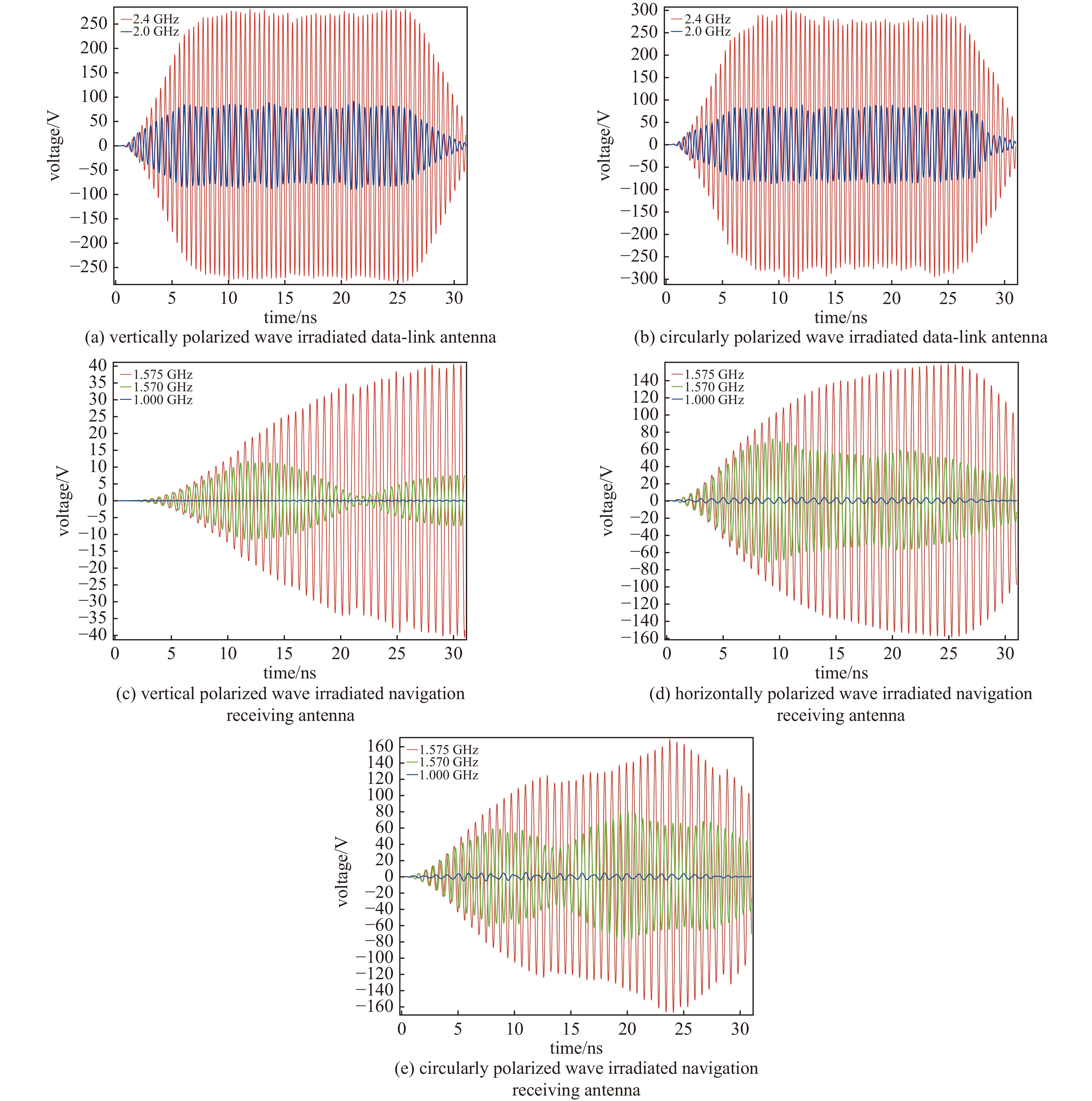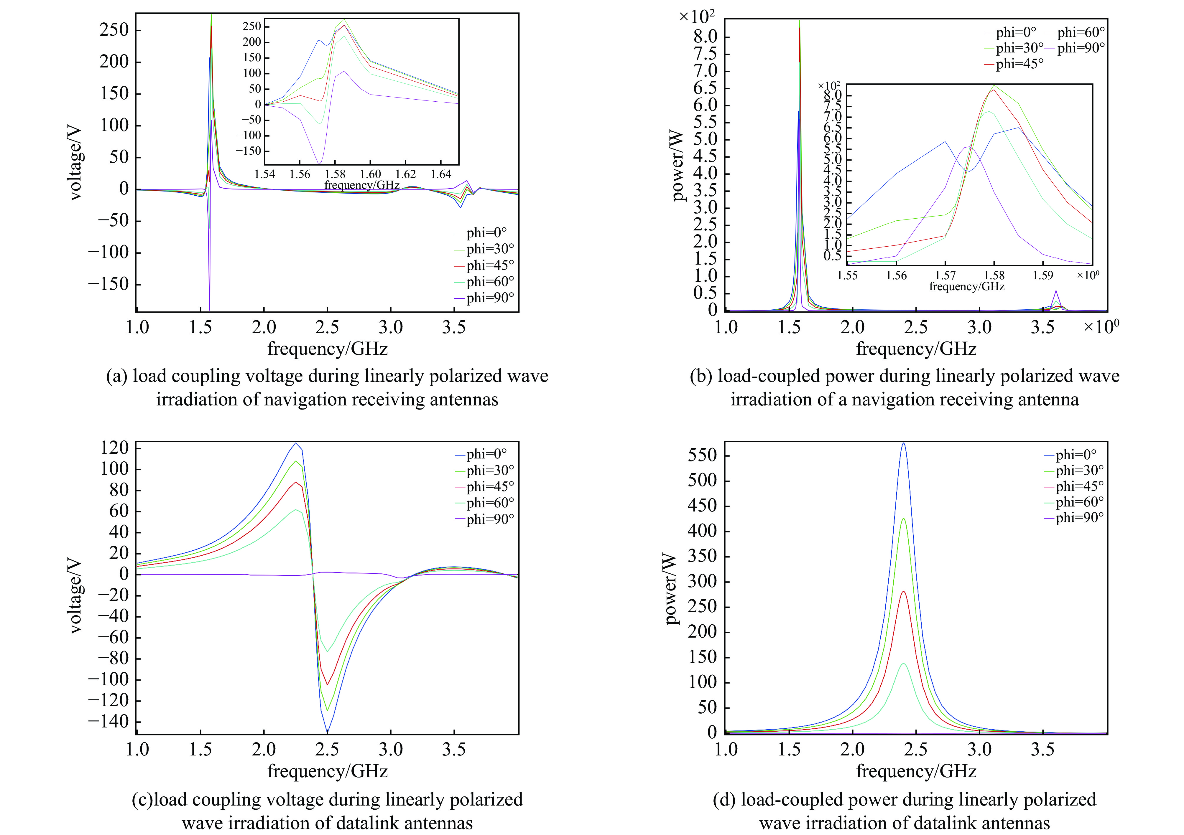 无人机蜂群与低空经济的发展凸显了高功率微波(HPM)攻防技术的战略价值。本研究针对无人机导航天线和数据链天线,基于COMSOL构建三维电磁耦合模型,通过场-路协同仿真分析其在HPM辐照下的时频响应特性。结果表明:导航天线在带内及邻近频段无论线极化或圆极化激励,均出现上升沿展宽、下降沿“截断”等波形失真,因其等效为窄带移相网络,在“宽带”脉冲激励下引发强烈色散,导致时域波形畸变;而数据链天线在各类激励下波形保持完整,因其幅频与相频响应平坦,色散弱。频域结果显示,两类天线最大耦合电压偏移于中心频点,最大功率位于中心频点。导航天线对右旋圆极化响应最强,但频偏时出现左旋耦合增强现象;数据链天线对各类极化响应相近,呈极化不敏感性。研究认为,天线的极化类型与频率选择性通过内在色散机制主导HPM耦合过程,决定能量响应与波形完整性,建议构建“前端滤波—瞬态抑制—系统冗余”的多层级防护体系,提升无人机电磁韧性。本研究可为无人机的反制与防护提供一定提供理论支撑。