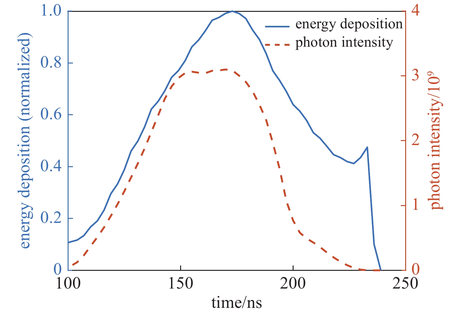 在脉冲X射线辐射效应研究中,需要将时间维度信息结合到仿真模型中,进而实现基于时间能量联合方法的辐射效应数值模拟,同时也为瞬态脉冲辐照效应的仿真提供了一种思路。建立轫致辐射打靶模型,计算出射脉冲X射线能谱,得到脉冲X射线的时间能量联合谱,结合辐射对象的辐射效应仿真模型,获得氧化铝陶瓷试样在不同时间及不同入射深度处的能量沉积。