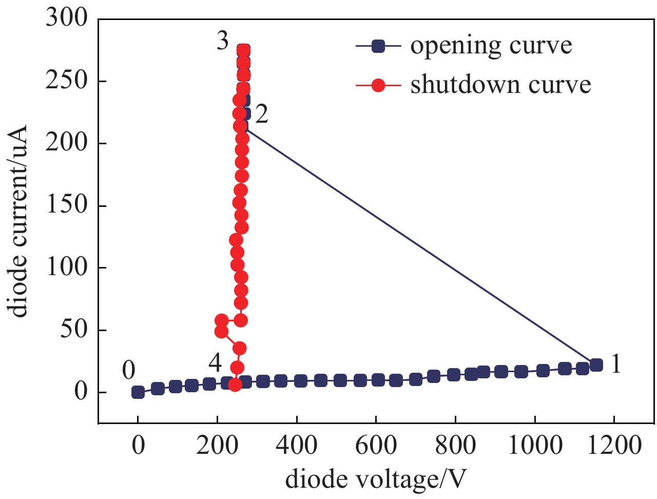 针对快前沿高重频脉冲的应用需求,设计并研制了一种基于半绝缘砷化镓(SI-GaAs)材料的新型脉冲压缩二极管,通过实验对其压缩性能和重频运行能力进行了测试。实验结果表明,利用此开关能够将前级脉冲的上升沿压缩约270倍和脉宽压缩14倍;并在50 Ω负载上,获得脉冲幅度1.3 kV、上升沿约1.6 ns、脉宽40.59 ns的电脉冲,重复频率达1 kHz,总计运行47 min,触发约两百万次。为研究脉冲压缩二极管的工作原理,对其静态伏安特性进行测试。分析认为,在电压初步加载阶段,SI-GaAs材料内的电场增强型的俘获与离化机制导致耐压增强,二极管在实验过程中出现延迟击穿现象;逆向偶极畴效应产生牵引机制,引发快速上升的位移电流,进而导致反偏结雪崩击穿,二极管表现出瞬间负阻特性,在负载上输出高压纳秒电脉冲。新型脉冲压缩二极管无外加触发快脉冲的前级器件,自身可以维持一定时间的强烈雪崩击穿状态,因此具有体积小、生产成本低的优点,可用于制作小型化高重频的纳秒脉冲功率源。