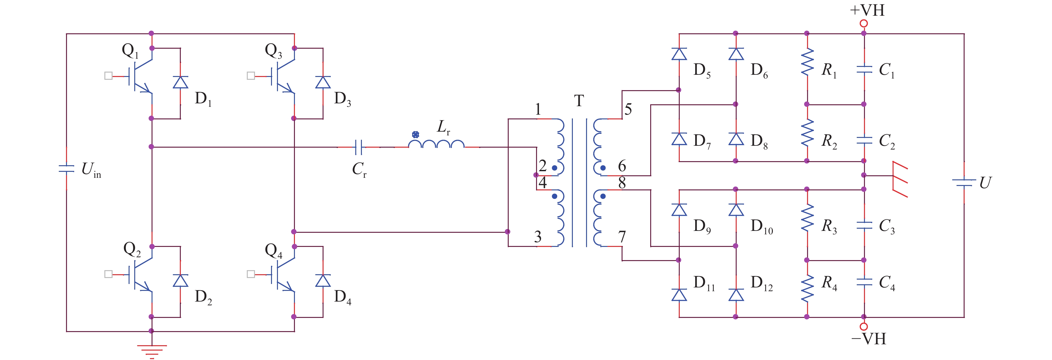 高压脉冲电容器是脉冲功率系统中应用较广的储能器件。根据大容量能库型脉冲装置对充电电源的技术要求,研制了一种输出电压±0.5~±10 kV可调、最大平均功率约3 kW、双极性一体化直流高压充电电源。设计上采用控制电路与正负双极性直流高压输出主电路一体化方式,通过隔离、屏蔽和保护措施,解决了目前双极性直流高压充电电源存在的正负极性电压不平衡、采样控制信号与高压地未隔离问题,减小了电源体积,提高了电源的鲁棒性、可靠性和电磁干扰能力。100多台充电电源在18.3 MJ脉冲装置中同时运行,在复杂电磁干扰环境下可靠稳定工作。