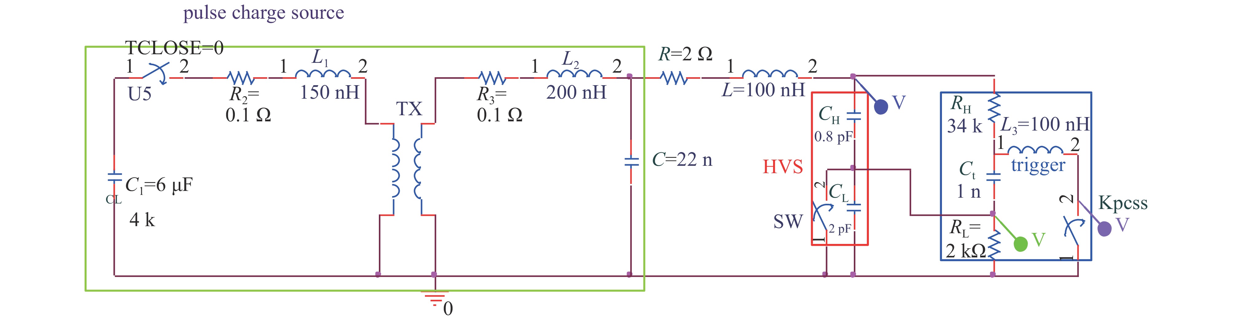 通过理论计算、数值仿真和实验验证的方法,研究了一台峰值功率数十GW、重复频率5 Hz的重复频率高功率脉冲驱动源,命名为“HEART-50”。该脉冲驱动源由充电电源、初级开关、脉冲形成线、主开关、阻抗变换线,以及假负载构成。首先介绍了HEART-50重复频率高功率脉冲驱动源整体设计思路;其次,对基于混合液体介质的高功率脉冲形成线和气体介质主开关进行了数值分析,并对其全电路工作能力进行了仿真分析;最后,对研制的HEART-50重复频率高功率脉冲驱动源进行了实验验证。结果表明,脉冲驱动源能够输出峰值电压520 kV,脉冲宽度约90 ns,脉冲上升沿小于25 ns,重复频率5 Hz的准方波电脉冲,峰值电功率约为25.3 GW,且具有较好的运行稳定性。