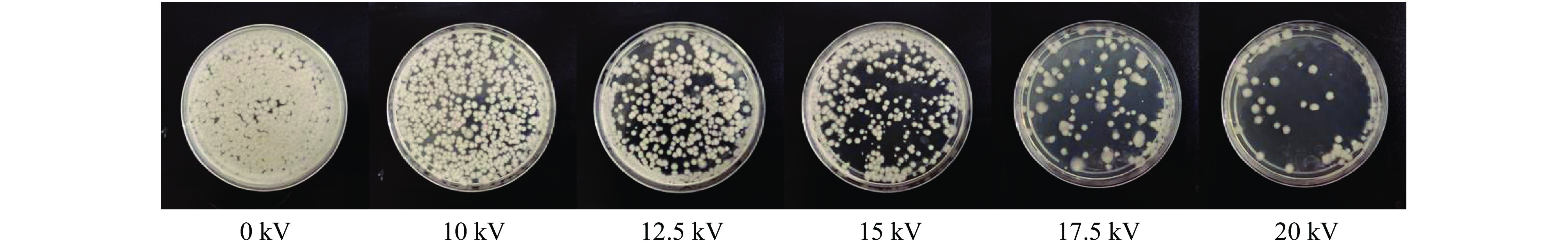 研制了一套单极性微秒脉冲阵列式等离子体射流系统,该系统可在大气压下激发产生等离子体射流,实现大面积的灭菌处理。该系统可产生峰值电压20 kV、频率15 kHz的高压脉冲,激发产生的射流均匀稳定,覆盖面积达37.7 cm2,射流长度达6 cm,射流功率为40.05 W,处理5 min可使射流覆盖范围内的枯草芽孢杆菌的芽孢基本全部失去活性。考察了不同参数对灭菌效率的影响,结果表明,灭菌率与工作电压、脉冲频率、处理时间呈正相关,在氦气氛围下有较好的灭菌效果。SEM显示等离子体射流能够对枯草芽孢杆菌的芽孢外壳结构造成损坏,导致芽孢无法正常代谢,最终死亡。