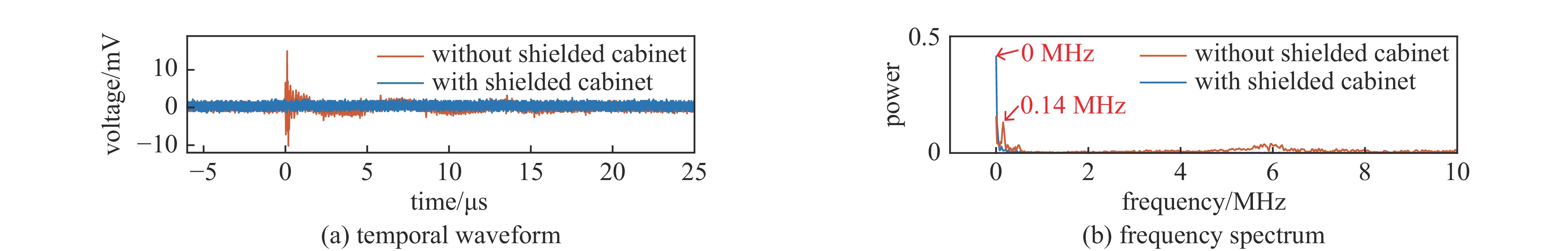 脉冲强磁场在高功率激光与物质相互作用领域有着重要的作用。报导了用于激光等离子体实验的脉冲强磁场设备产生的电磁干扰的空间和频谱分布特征以及屏蔽方法的实验结果。发现电磁干扰来自于脉冲强磁场设备的放电主回路、充电和接地的次级回路。这些电磁干扰主要通过电容性耦合进入真空靶室、进而通过传导型耦合途径从靶室进入电子设备,或通过充电线和接地线进入电网或弱电电缆、最终进入电子设备,部分电磁辐射通过自由空间传输方式耦合进电缆和电子设备。通过断开传导型耦合路径和屏蔽自由空间电磁辐射等途径来消弱电磁干扰,对比实验发现这些措施对抑制电磁干扰有明显的效果。这些结果可以应用于强磁场调控激光等离子体的实验研究。