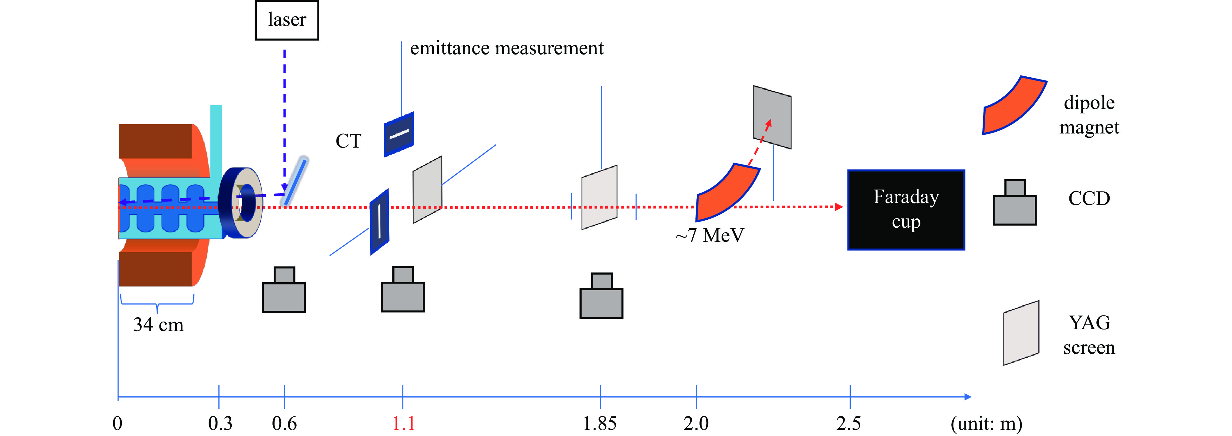 在光阴极电子枪系统当中,驱动激光的时空整形是实现束流低发射度的关键之一。基于南方光源预研项目C波段光阴极电子枪测试平台,介绍了驱动激光系统的布局与测试相关内容。测试平台于国内首次采用初始RMS脉冲长度为160 fs的266 nm激光作为驱动激光,利用双折射晶体的脉冲时间延迟完成对激光脉冲纵向时间整形,并配备多个孔径的可调光阑实现对束流的横向尺寸的调节。经过整形,激光平台可以提供纵向RMS长度为160 fs、420 fs的高斯脉冲激光与半高全宽为5 ps的平顶分布脉冲激光,根据激光测试结果,简要分析了不同脉冲分布对于束流发射度演化以及脉冲分布的影响,不仅为后续光阴极电子枪束流调试提供了指导,并对初始脉冲分布对空间电荷力的影响实现更加深入的研究提供了支持。