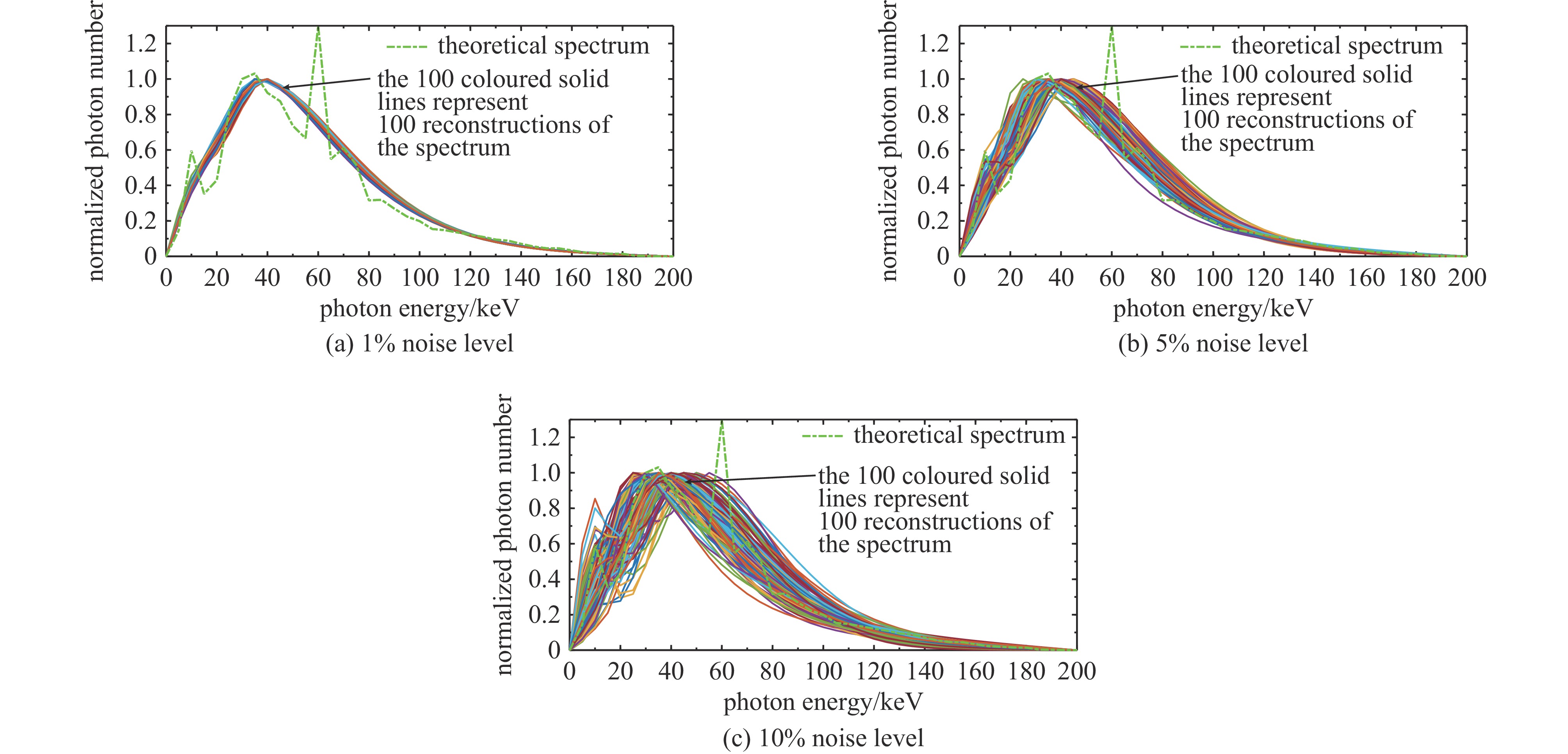 吸收法测量脉冲X射线能谱时,测量数据的微小扰动会引起重建能谱的较大波动,甚至出现不符合物理规律的负值。针对测量数据的噪声对脉冲X射线重建能谱影响较大的问题,构建了重建能谱准确性的评估方法,分析了贝叶斯迭代法对包含不同程度噪声干扰的测量数据重建能谱的准确性。通过在贝叶斯迭代法中加入平滑约束条件的方式,降低了噪声对重建能谱的影响。根据预估待测能谱的特征,提出了以能谱峰值为界分段平滑的方法,比较了整体平滑和分段平滑方法的能谱重建效果。多次求解表明,分段平滑贝叶斯迭代法的重建能谱对噪声的敏感度显著下降。设计了基于吸收法的能谱测量系统,分别利用平滑前后的贝叶斯迭代法依据实验测量数据重建能谱,结果表明,分段平滑的贝叶斯迭代法的重建能谱更接近理论能谱,重建效果更好。