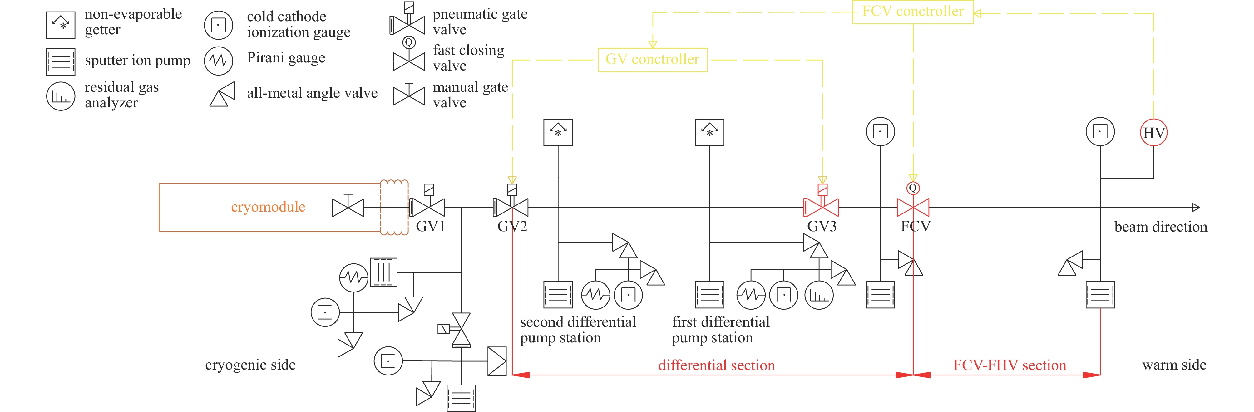 深圳中能高重频自由电子激光装置(S3FEL)是一台规划中的软X射线自由电子激光(FEL)装置,基于TESLA(TeV Energy Superconducting Linear Accelerator)型超导射频腔的直线加速器用于获得高重频高梯度的加速场,超导射频腔所在的低温超导模组是S3FEL装置中最具挑战的核心设备。超高真空差分段位于低温超导模组束流管出口,用于实现电子束运行管道在低温模组段与常温段的过渡,同时差分段上要求具有真空联锁保护,用于在突发情况下对低温模组内超导射频腔的保护。传统的快速关闭阀保护计算中仅按照气体分子速率进行计算,本文通过根据流态判据,划分快阀传感器至模组出口区域并开展有限元法和蒙特卡罗法计算,实现快速保护过程的瞬态分析。快阀传感器—快阀段真空室内瞬态压强分布计算结果表明,快阀传感器设置在距离快阀8~10 m位置可提供足够的缓冲反应时间,使快阀有足够时间做出动作响应;差分段瞬态压强分布计算中,当发生等效泄漏尺寸为0.5 mm的突发泄漏时,当低温测门阀完全关闭时,此处的压强最高达到10−5 Pa,仍能维持较好的高真空环境并满足离子泵的工作要求。此工作为S3FEL的差分段设计提供重要理论依据。