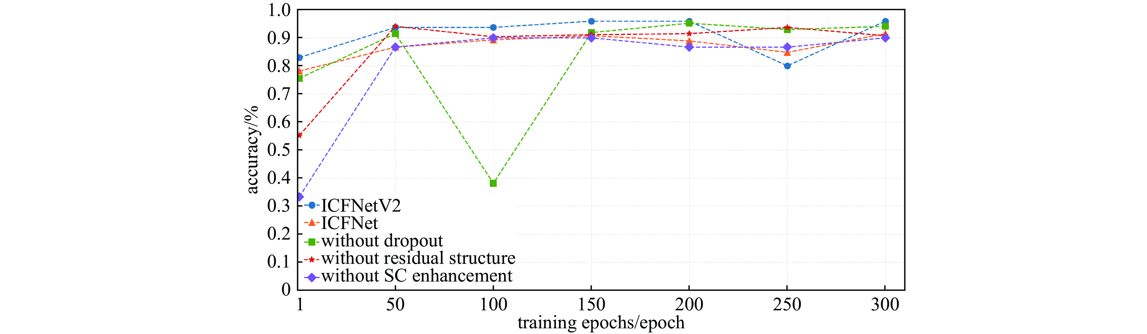 针对小样本高功率固体激光装置中光学元件表面疵病的精准检测需求,基于ICFNet提出了一种融合数据增强与深度残差网络的检测方法ICFNetV2。首先采用残差连接机制与通道解耦卷积操作的协同设计,搭建了包含34个层级联模块的深度网络架构,成功抑制了深层网络训练中的梯度衰减现象,并显著提升了特征跨层传递效率。网络中嵌入了空间Dropout层,同时在数据预处理阶段采用随机旋转、镜像翻转和高斯噪声注入等数据增强策略,将训练样本量扩展至原始数据集的9倍,提升了模型的泛化能力。消融实验进一步证实网络中模块的有效性。实验结果表明,改进后的ICFNetV2在麻点、划痕和灰尘三类疵病分类任务中达到97.4%的准确率,相较ICFNet模型提升0.7%。