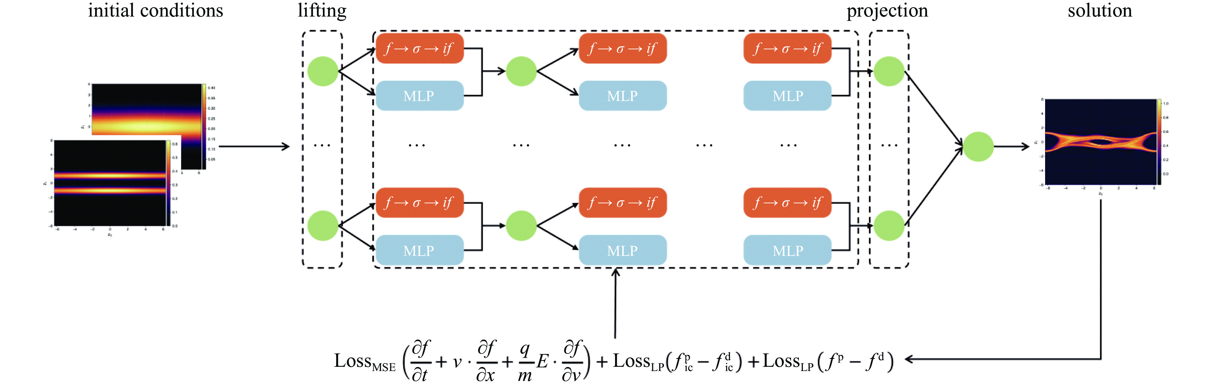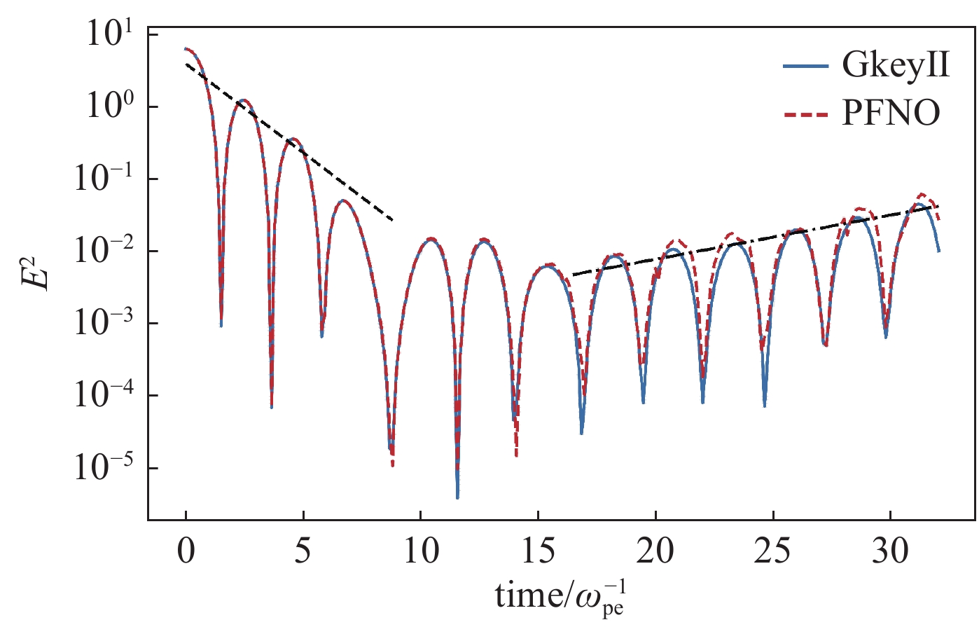 Vlasov方程是研究等离子体物理的重要方程,在高温、完全电离且忽略库伦碰撞的情况下,其数值求解方法主要有欧拉类方法和拉格朗日类方法。考虑传统数值求解方法在高精度网格条件下计算资源快速增长、维度灾难等问题,采用了基于物理信息驱动的傅里叶神经算子(PFNO)对Vlasov方程进行求解。该方法将傅里叶神经算子高维函数映射能力与Vlasov方程物理约束结合,构建了数据-物理信息驱动的深度学习框架,可提升模型在稀疏数据条件下的泛化性能,同时具有网格无关性特征。数值实验表明,该方法在保证求解精度的同时,相比传统有限元法和谱方法计算效率提升1~2个数量级,且能并行处理大批量数据。该研究为高维Vlasov动力学方程的求解提供了新思路,在惯性约束聚变、空间等离子体模拟等领域具有一定应用潜力。