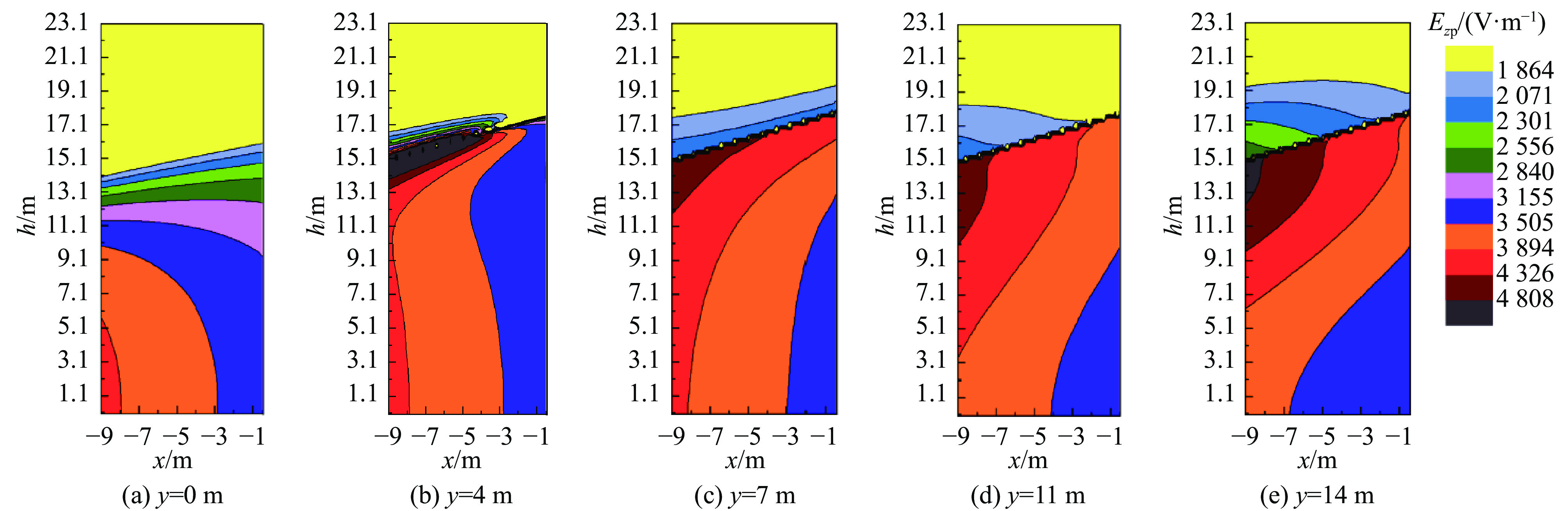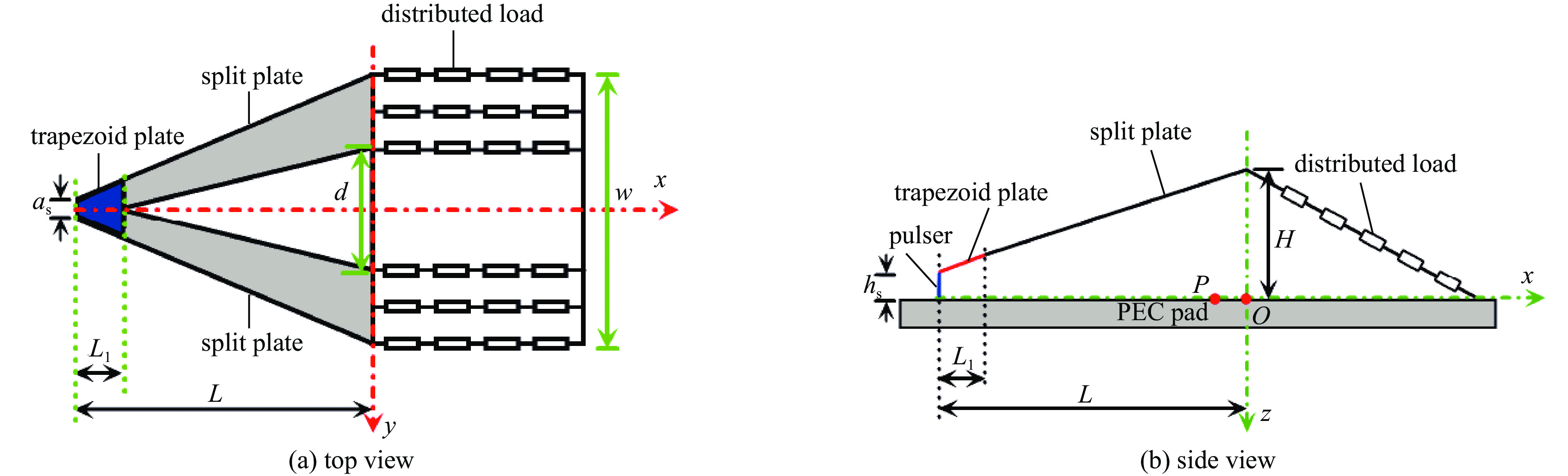 基于并行时域有限差分(FDTD)方法,以大型分裂型分布式负载垂直极化EMP模拟器有效工作空间的选择为目的,先对固定尺寸的该类型模拟器不同平面上的电场垂直分量峰值(简称为“场峰值”)分布特性进行了研究,进而给出了该类型模拟器有效工作空间的选择方法示例;并据此选择了影响该类型模拟器有效工作空间尺寸的两个典型平面为监测面,研究分析了模拟器的最大宽度、模拟器的架高、及模拟器上极板空隙最大尺寸对所选择的监测面上(归一化)场峰值分布的影响,进而给出模拟器的设计建议。模拟结果表明:模拟器的最大宽度越宽、模拟器的架高越低、及模拟器上极板空隙最大尺寸越小,会使得所选择的监测面上场峰值有增加的趋势;模拟器最大宽度的增加会使得场峰值在模拟器宽度方向上的均匀性变好;模拟器架高的增加会使得场峰值在模拟器高度方向上的均匀性变好,但会使得在宽度方向上的均匀性变得略差;模拟器上极板空隙最大尺寸的增加会使得模拟器内场峰值在宽度方向上的均匀性变好,但会使得其在高度方向的均匀性变差。