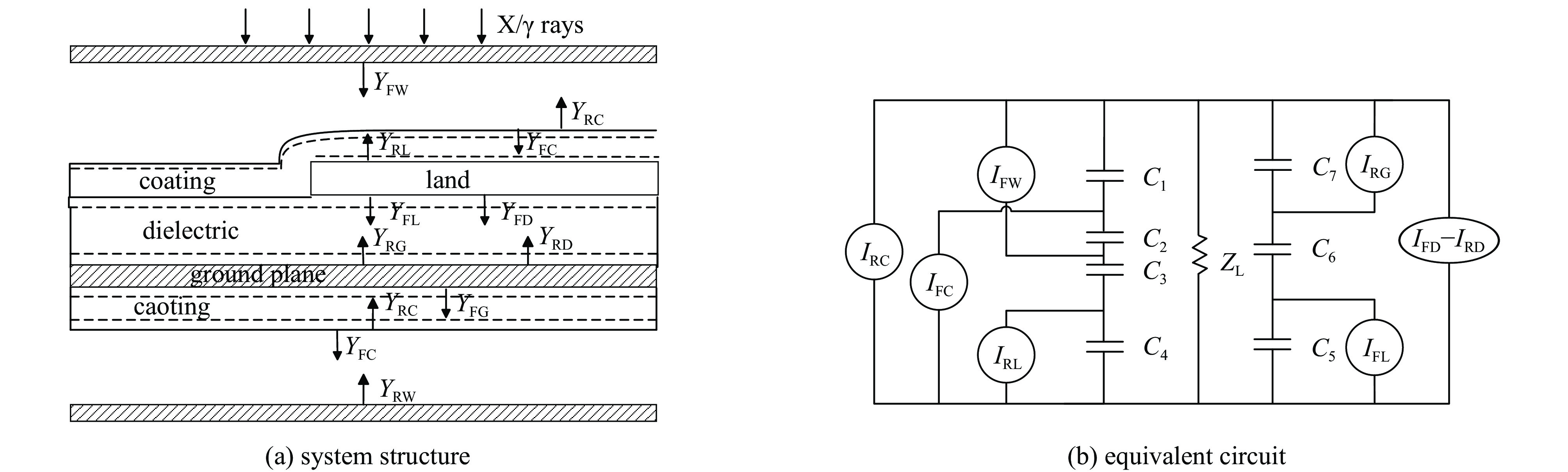 X/γ射线照射电子系统屏蔽盒时会穿透盒体在各层系统表面或内部产生光电子或康普顿电子,并激励起电磁脉冲,这些粒子或电磁场将干扰甚至损伤盒内电子系统的敏感电子元器件,影响电子系统的正常工作。为快速评估受射线照射下的电子系统内部粒子和电磁环境及其效应,理论分析了屏蔽盒腔体内初级粒子激励的电磁脉冲与PCB的场路耦合及射线直接多层穿透耦合这两种作用机制下产生的辐照响应,构建了其等效电路模型并验证了可行性,进而利用该模型对产生的效应电流进行了计算。在此基础上,利用该计算建模方法研究分析了对PCB采用涂覆绝缘防护层和进行接地两种保护措施后的PCB系统辐照效应的变化规律。为研究电子系统屏蔽盒的辐射效应提供了一种较为完整的直观理论计算方法,其可以在不采用模拟仿真软件的前提下实现对电子系统辐射效应的计算分析,并可推广至更广泛的场景。