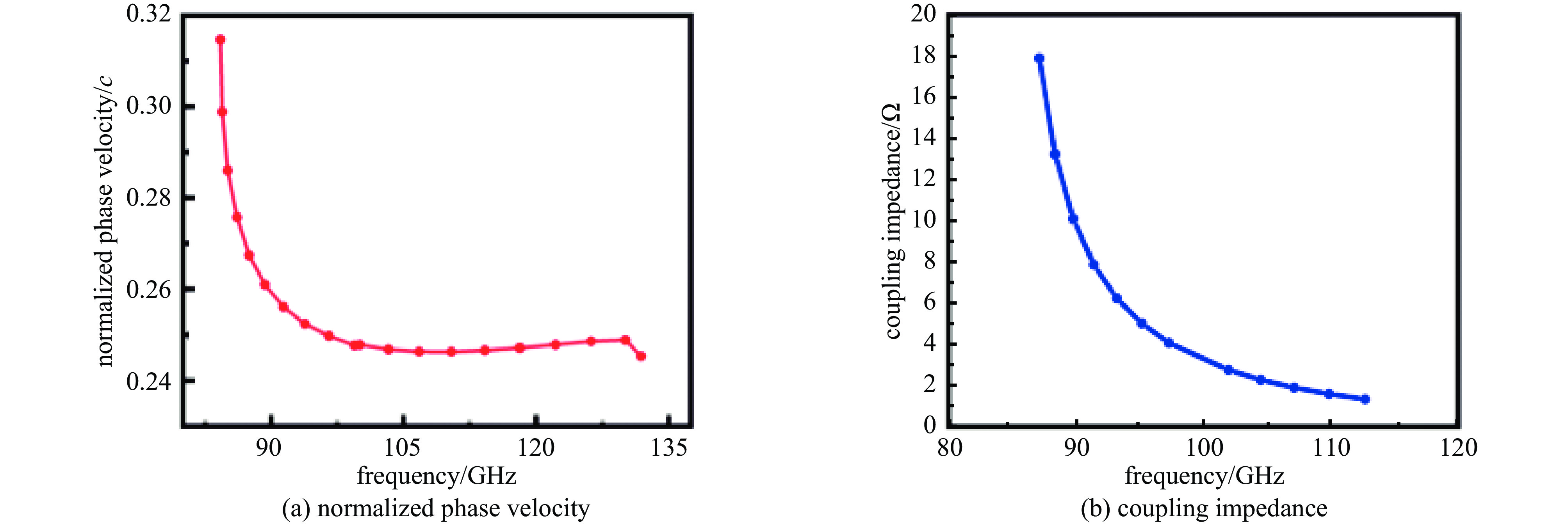 Three-dimensional electromagnetic simulations in CST were conducted to verify the high-frequency characteristics, electric field distribution, and amplification performance of the proposed SWS, thereby confirming the validity of the design.