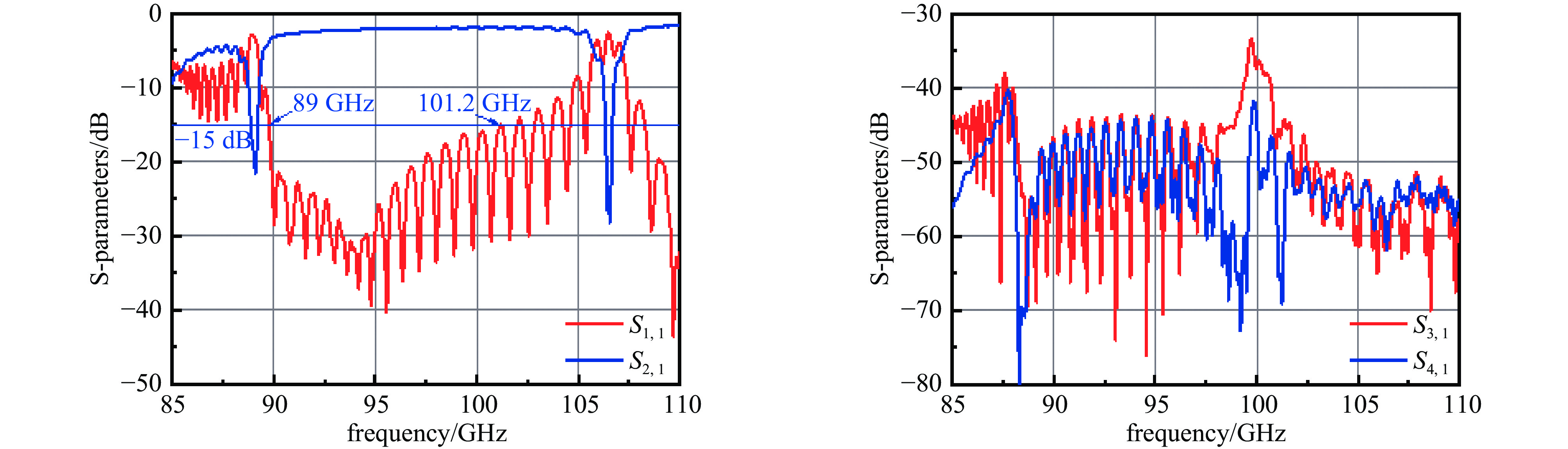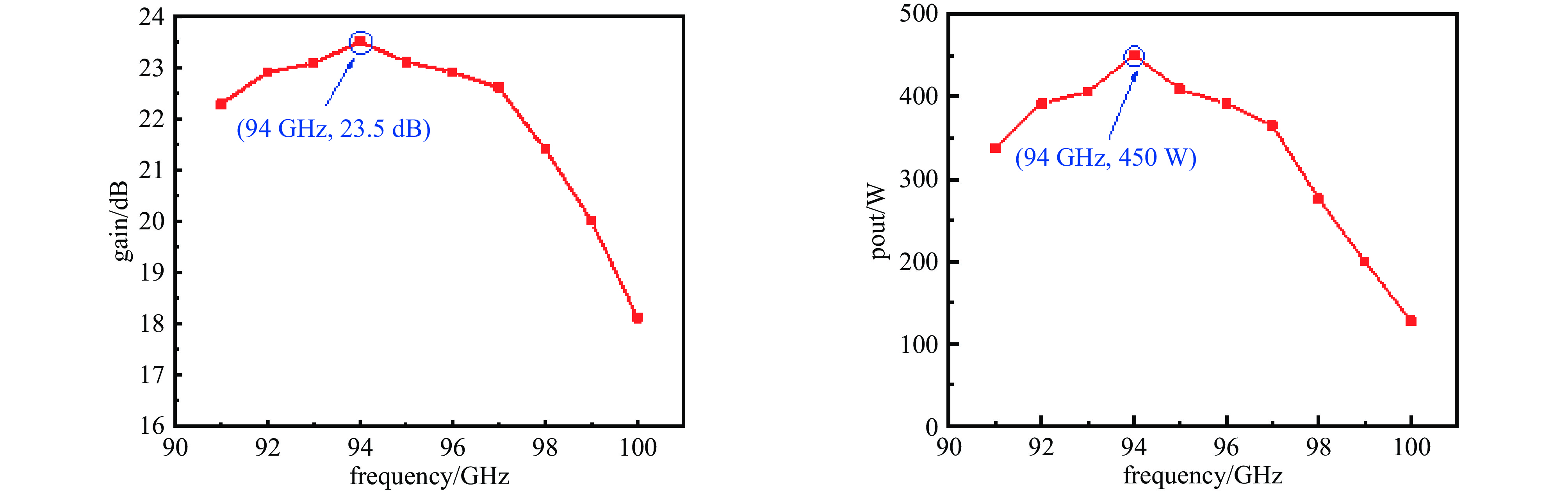 Results indicate that the designed TWT achieves a transmission bandwidth of 10 GHz. With an electron beam voltage of 17.9 kV and a current of 0.35 A, the output power reaches 450 W at 94 GHz, corresponding to an efficiency of 7.18% and a gain of 23.5 dB. Moreover, under fixed beam voltage and current, the TWT delivers over 200 W output power across 91–99 GHz, with a 3 dB bandwidth of 91–98.5 GHz. The particle voltage distribution after modulation further validates the mode analysis.