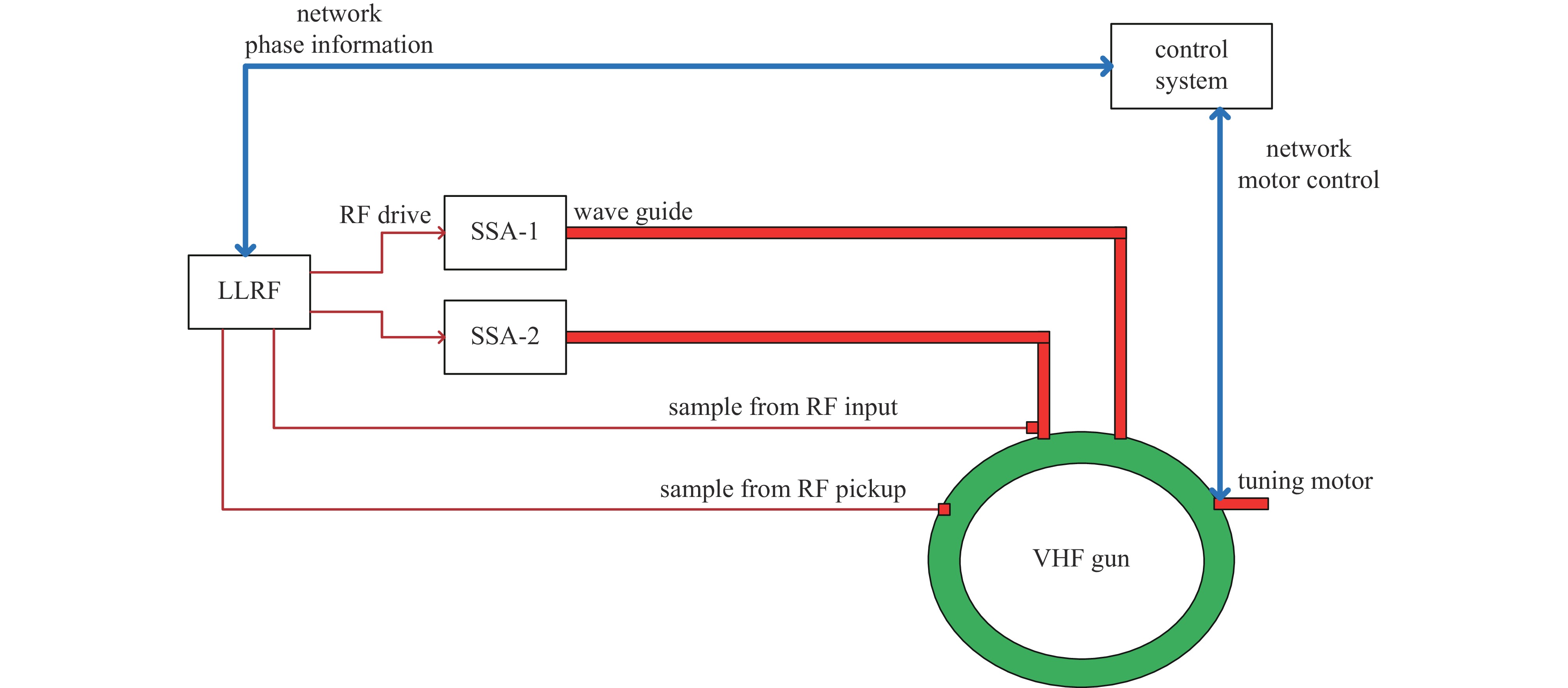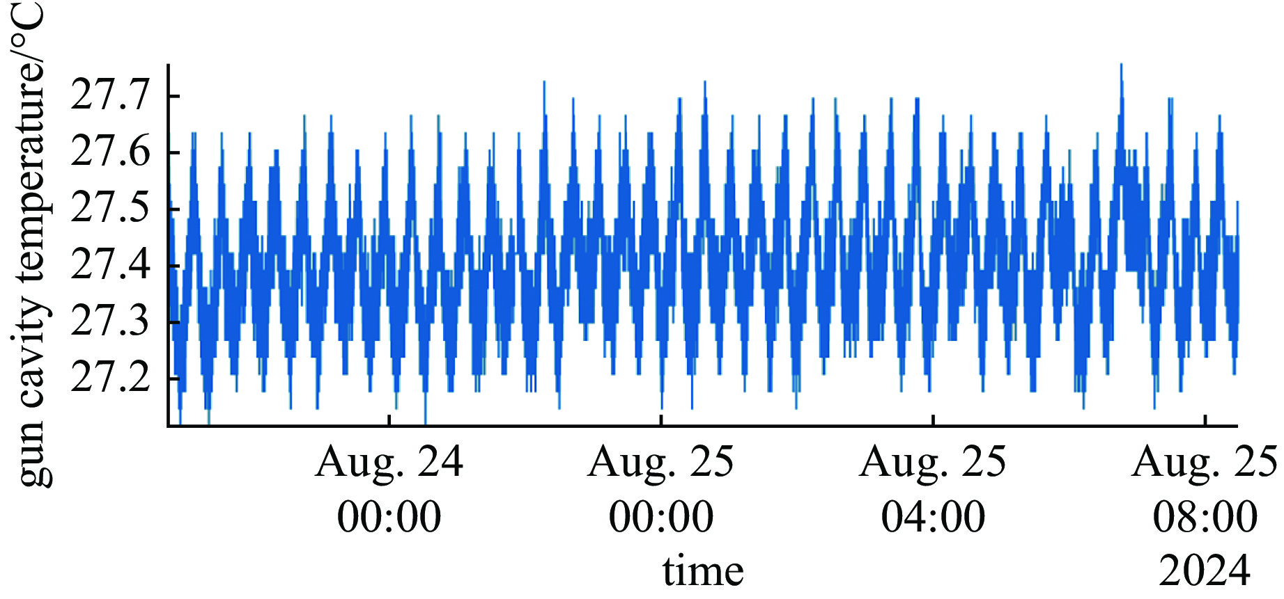 甚高频光阴极微波电子枪是一种工作于连续波模式的电子源,用于产生MHz级高重频、高品质的电子束,是高重频X射线自由电子激光、高重频超快电子衍射等科学装置的关键核心部件。在运行过程中,电子枪腔体谐振频率随着馈入功率及冷却水温度变化而变化,因此需要对电子枪频率进行实时测量并通过调谐器对腔体频率进行调整以保障腔体内微波场幅度和相位的稳定。基于LCR振荡电路模型,分析了腔体取样微波与入射微波的相位差与电子枪谐振频率的关系,采用了频率扫描、频率跟踪和主动调谐的电子枪腔体三步调谐方法,成功应用于清华大学甚高频电子枪调谐和微波幅度相位控制。通过该调谐方法,可以使电子枪在高功率运行时始终保持谐振状态。电子枪在满功率运行下腔体谐振频率偏差控制在94.2 Hz (RMS),腔体微波采样口的幅值稳定性达到