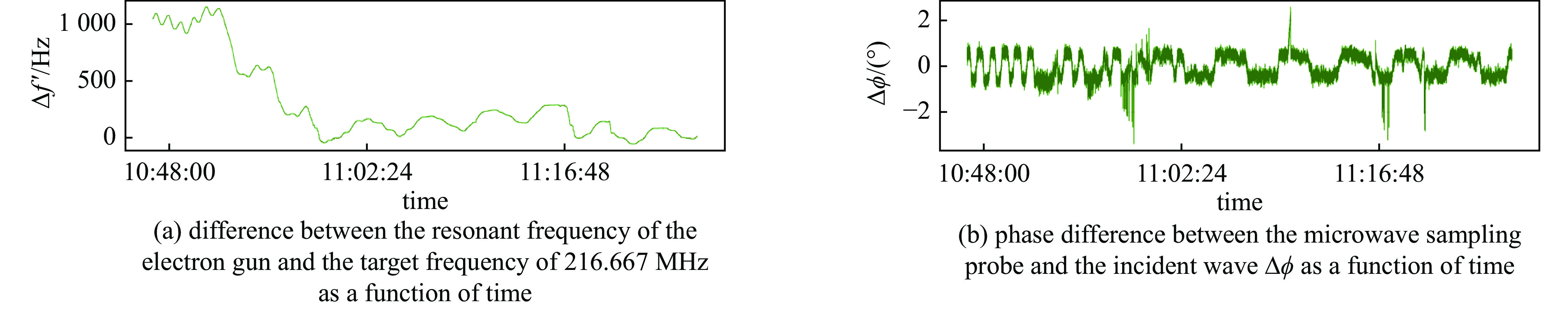甚高频光阴极微波电子枪是一种工作于连续波模式的电子源,用于产生MHz级高重频、高品质的电子束,是高重频X射线自由电子激光、高重频超快电子衍射等科学装置的关键核心部件。在运行过程中,电子枪腔体谐振频率随着馈入功率及冷却水温度变化而变化,因此需要对电子枪频率进行实时测量并通过调谐器对腔体频率进行调整以保障腔体内微波场幅度和相位的稳定。基于LCR振荡电路模型,分析了腔体取样微波与入射微波的相位差与电子枪谐振频率的关系,采用了频率扫描、频率跟踪和主动调谐的电子枪腔体三步调谐方法,成功应用于清华大学甚高频电子枪调谐和微波幅度相位控制。通过该调谐方法,可以使电子枪在高功率运行时始终保持谐振状态。电子枪在满功率运行下腔体谐振频率偏差控制在94.2 Hz (RMS),腔体微波采样口的幅值稳定性达到0.0046 % (RMS),锁相精度达到0.0023 ° (RMS),实现电子枪在满功率下长时间稳定运行。