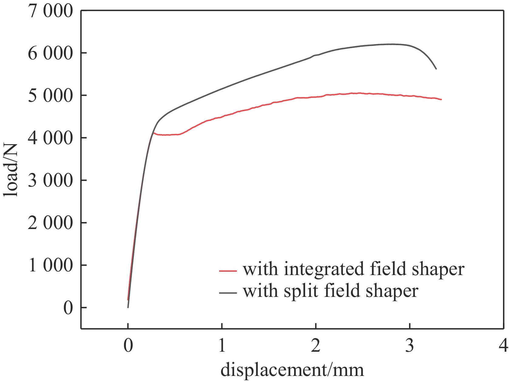 电磁脉冲焊接技术是一种新兴固态焊接技术,将其应用于电力导线与端子的连接,可有效提升电力导线接头的可靠性。然而,电磁脉冲焊接接头存在中间未结合区域,严重制约了电磁脉冲焊接技术在电力导线连接领域的应用。提出了一种分体式集磁器结构,以进一步提升电磁脉冲焊接接头的结合性能。为证实所提出分体式集磁器结构的有效性,首先,基于对分体式集磁器和传统一体式集磁器的理论分析,进行分体式集磁器结构设计;随后,通过仿真探究了集磁器结构对接头变形区域电磁参数和运动参数的影响规律;最后,开展实验测试,对比分析使用不同集磁器结构所制备电磁脉冲焊接接头力学性能,验证分体式集磁器对接头结合性能的改善作用。实验结果表明,相较于具有相同尺寸的一体式集磁器,使用分体式集磁器制备的电磁脉冲焊接接头拉伸性能提高了22.73%,焊痕总长度增加了2.68 mm。
