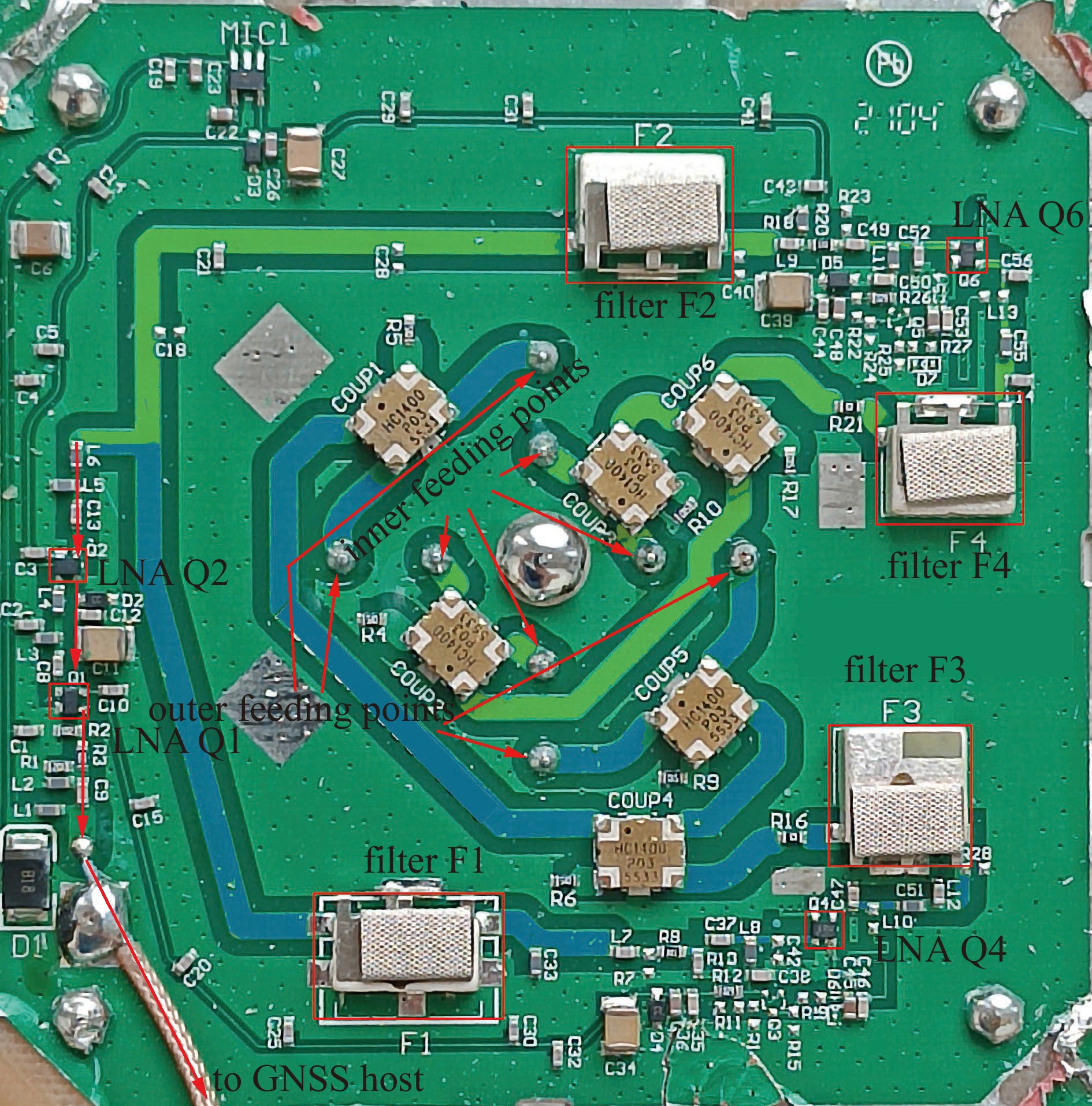 通过辐照实验和热测方法研究了一型GNSS兼容接收机天线高功率微波(HPM)前门通道效应。辐照实验表明,在HPM频率1.6 GHz、脉宽50 ns、到靶功率密度约35 W/cm2条件下,实验的6个天线样本中有4个完全损伤、2个降级。对该型GNSS天线射频通道的分析和测试表明,其包含三级放大电路:第一级由两个滤波器和两个低噪放(LNA)分别形成中心频率约1.25 GHz和约1.6 GHz两条射频通道,其后信号合路进入共用的第二和第三级LNA。研究结果表明:HPM脉冲频率(1.6 GHz)所在射频通道的第一级LNA被HPM脉冲降级或损伤,是导致该型GNSS天线样本出现降级和损伤的原因;另一通道的第一级LNA及共用的第二、第三级LNA未受明显影响。原位更换受损的第一级LNA后,GNSS天线功能恢复正常,这说明该型GNSS天线前门效应与HPM频率具有较强相关性。
