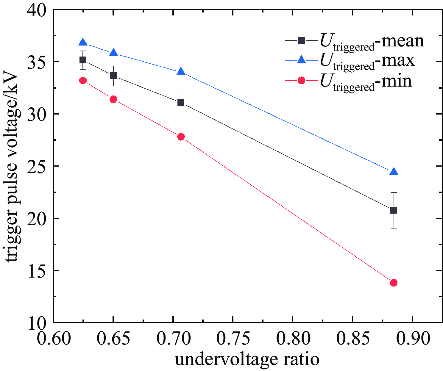 毫秒(ms)充电的PFN-Marx型脉冲驱动源在轻量化、小型化实现方面具有较大潜力,为实现其长寿命稳定可靠运行,需解决的关键技术之一是提升气体触发开关重频稳定性。研制了一套基于电晕稳定开关工作原理的气体触发开关,以解决ms充电条件下开关工作电压分散性大、触发电极烧蚀过快的难题。围绕该开关开展了结构设计、静电场仿真、触发器研制、触发开关工作范围、时延及其抖动等研究,解决了ms充电条件下开关发生自击穿或触而未发概率高的问题。实验研究结果表明:所设计触发开关在工作气体SF6、气压0.6 MPa的条件下,开关最高工作电压达到90 kV,在开关工作电压84 kV、重频20 Hz、串内脉冲数500个、开关不换气的条件下,连续累计测试开关寿命10万次,期间仅出现1次自击穿,自击穿率<0.01‰,初步实现了电触发开关具有一定工作范围和寿命的设计目标。