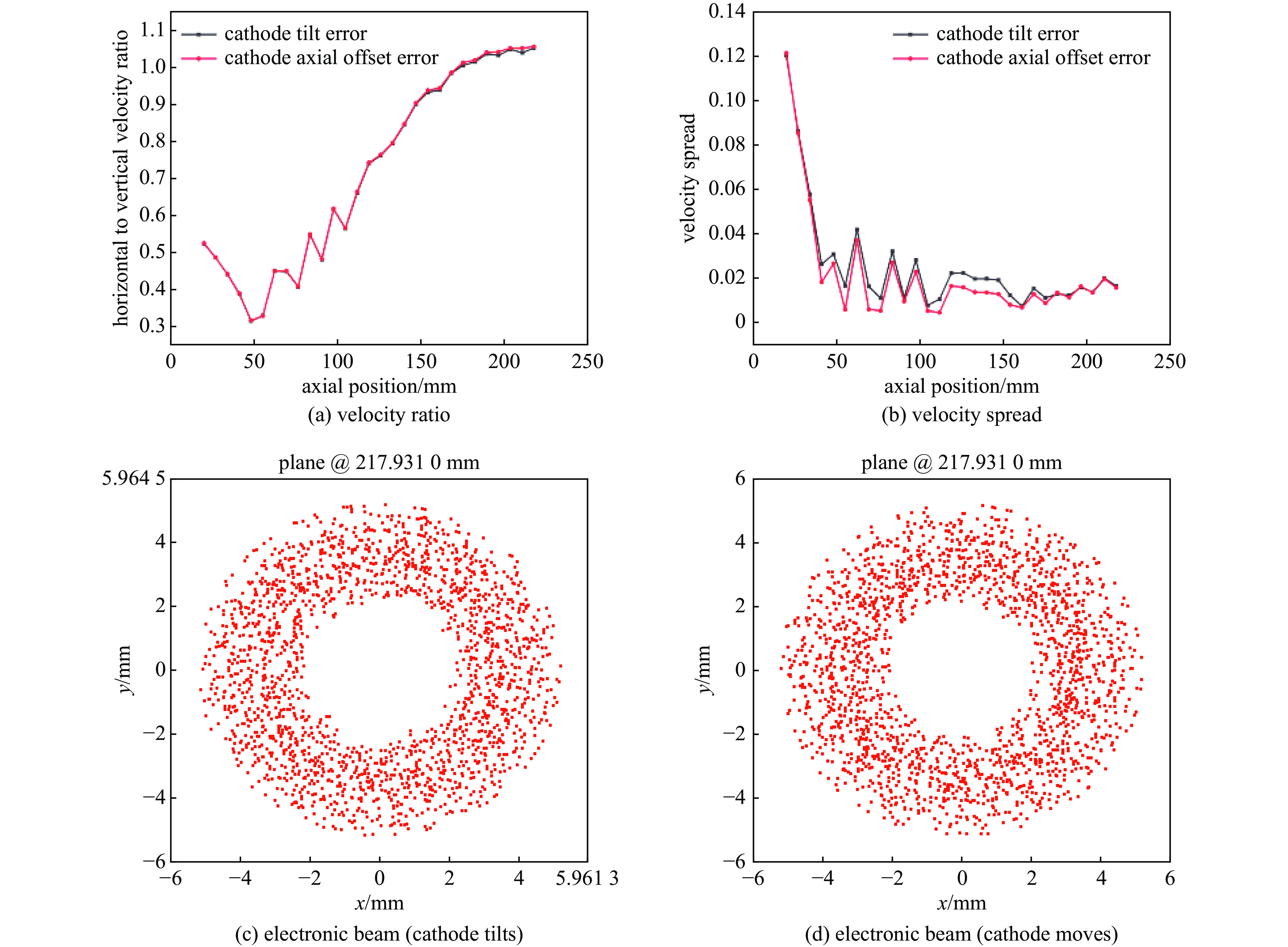 介绍了大回旋电子枪的形成理论,分析了电子注在非理想会切磁场中的运动过程,并利用CST和E-Gun对电子枪进行建模和仿真分析。研究了磁场、工作电压、电流对大回旋电子注质量、轨迹的影响,为Ka波段二次谐波大回旋电子注回旋行波管实验测试寻找最佳工作点提供指导,同时降低电子枪在实验过程中的损坏风险。研究表明,电子枪的工作电压过低时,速度比较大,出现电子回轰的现象,对阴极不利;同时,阴极的反向磁场过高时,电子回旋半径过大,会导致电子轰击在电子枪壁上损坏电子枪。最后对比了两种软件的计算结果,分析了各自的特点。