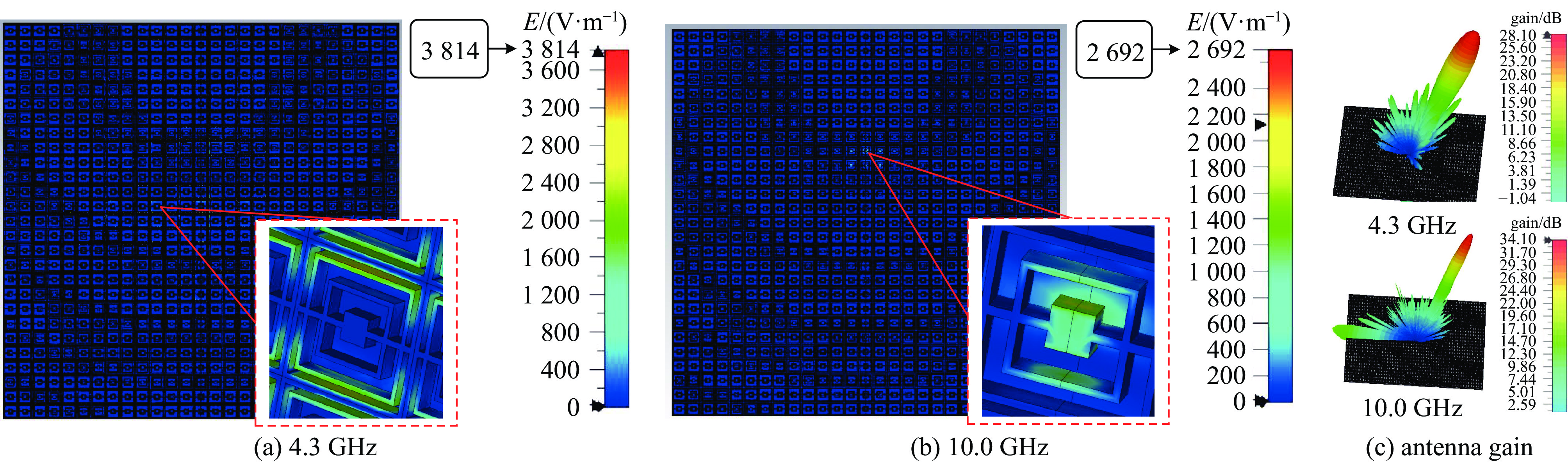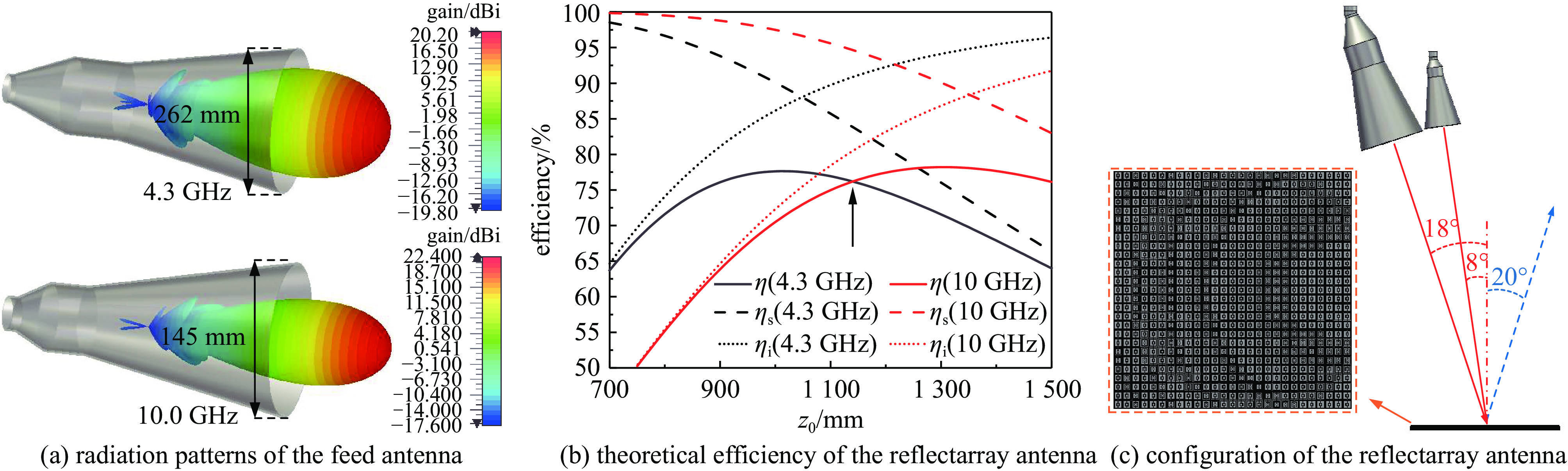 基于反射阵列天线基础理论并利用参考相位优化方法,提出了一种适用于高功率微波双频反射阵列天线的相位综合方法。该方法充分考虑天线单元在不同入射波角度下的反射相位状态、电场强度以及与结构参数之间的对应关系,并进一步引入了筛选阈值的概念以提升系统功率容量,同时通过参考相位优选来缓解因筛选阈值而丢失掉小部分相移曲线引起的口径效率降低。该方法能够简化双频反射阵列天线流程并有效提升天线性能。为了验证方法的正确性,设计了一种多方框形状的改进型反射阵列天线单元,并用所提出方法开展双频反射阵列天线设计。该27×27单元阵列的工作频率为4.3 GHz和10.0 GHz,口径效率分别达到了67.37%和48.69%,真空中的功率容量达到数百兆瓦,有效验证了所提出相位综合方法的适用性。
