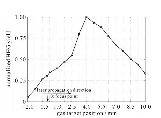 This paper presents an experimental method to realize the best high-order harmonic generation(HHG) phase matching in the interaction of strong optical field and gas target. By studying the effects of the relative location between gas target source and Gaussian-type driving field focus on the harmonic phase matching, conclusions are obtained that the optimum position of gas target for phase matching is always 3-5 mm behind the focal point of the driving field, with much lower HHG yield before the focus caused by serious harmonic phase mismatch. At the same time, in the optimum relative position, the driving field and the high-order harmonic field have similar spatial distribution characteristics, providing the experimental basis for the commonly used assumptions of Gaussian beam for high-order harmonic field.