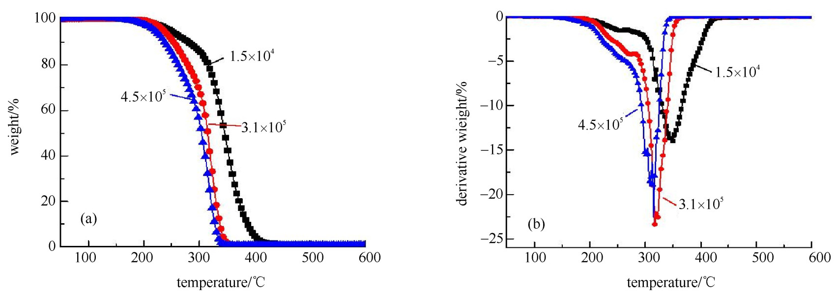 Poly-α-methylstyrene (PAMS) is one of the most important mandrel materials used in the fabrication of laser inertial confinement fusion (ICF) targets. The effects of the molecular weight on the degradation products and degradation temperature of PAMS were investigated using fast pyrolysis gas chromatography-mass spectrometry (Py-GC-MS), thermogravimetric analysis (TG/DTG) and isothermal degradation activation energy of PAMS was calculated by Arrhenius equations. The Py-GC-MS results show that the pyrolysis of PAMS was found to yield α-methylstyrene monomer exclusively.Moreover, it also suggested that the effect of molecular weight on the degradation products of PAMS can be neglected. The TG results indicate that the thermal degradation temperature decreases as the molecular weight of PAMS increases, and the main thermal degradation temperature ranges from 240 to 450 ℃.Finally, with the decrease of molecular weight and the increase of thermal degradation rate, the activation energy of thermal degradation of PAMS increases.