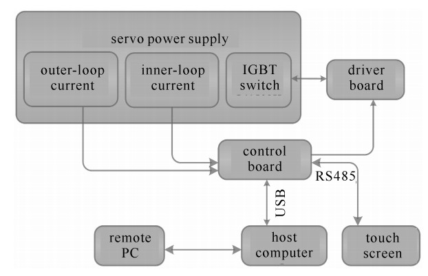 Based on the experimental physics and industrial control system (EPICS), a servo power controller is designed to be inserted into the existing power supply for testing its function of measurement and control in real time. The power supply controller uses dead time modulation (DTM) technology to adjust the output current by tracking the external control signal. Zero current switching (ZCS) can work under DTM, thus the switching loss can be reduced and the power efficiency can be greatly improved under high frequencies. In this paper, the principle of the power supply and its controller are introduced, and the DTM method is studied and verified by Matlab simulation and experiment for developing control technology of Tokamak power supplier.