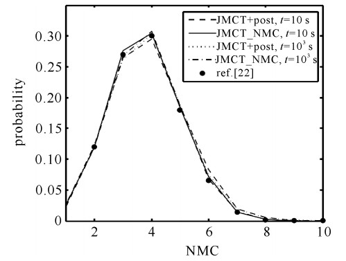 Neutron multiplicity counting (NMC) has been widely used in many fields related to non-destructive nuclear material measurement, such as nuclear material protection control and accounting, arms control verification and so on. Developing simulation tools, and carrying out numerical experiments are important means in the research on the application of NMC, which also become one important area of neutron transport simulation. This paper presents a new method to calculate NMC by sequential detection events simulation. By realizing the on-line NMC calculation, based on JMCT particle transport simulation code, the program to simulate neutron multiplicity counting, JMCT_NMC, was developed. This paper also presents some results of NMC calculation examples to test the code, and comparison of the time consumption of JMCT_NMC and traditional method. In JMCT_NMC code, by getting rid of the large data storage requirement, it is possible to simulate neutron multiplicity with large event number and high calculation efficiency.