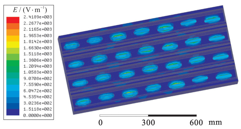 In conventional High Power Microwave(HPM) waveguide arrays of longitudinal shunt slots, the mutual coupling of slots in different waveguide can badly decrease the capability of wide-angle scanning of array. For this reason, an L-band HPM waveguide array of longitudinal shunt slots was designed. The choke groove was adopted to restrain the mutual coupling of slots of the HPM array antenna. The results of simulation are: the scanning angle of array without choke groove structure with the gain of antenna decreased 3 dB is only 24.7°, and it is 33.0° for array with choke groove structure; the wideband of active reflection of array have been improved with choke groove structure, the bandwidth of VSWR ≤3 of array with choke groove is 6.6%, and that is 5.0% without choke groove; the power-handling capacity of array antenna with scanning angle of 35° can reach 957 MW, which is a little less than that of array without scanning(1008 MW).