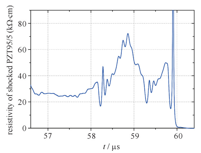 Explosion-driven ferroelectric generator (EDFEG) has important applications due to its excellent properties of high energy density and small volume. The output of EDFEG is based on the depolarization of ferroelectric during shock wave compression. In the present work, a new experiment method was developed to investigate dynamic resistivity of PZT95/5 under shock wave compression, in which a pulse capacitor was used as an output load. A current leakage in shocked PZT95/5 was observed in the experiment at a shock stress of 3.5 GPa after the depolarization of all ferroelectrics. This current leakage was just related to the resistance of shocked PZT95/5 and the voltage applied. The resistivity of shocked PZT95/5 was calculated for a longer time than the shock transit time of the sample. The factors that reduced the efficiency of output charge were analyzed. Furthermore, new experiments were designed to eliminate the effect on depolarization of ferroelectrics from boundary rarefaction. Two shots of experiments with different capacitance loads produced different voltages across the PZT95/5 ferroelectrics stack. These experimental results show that efficiency of output charge was improved obviously, and that the higher the electric field was, the more the resistance of PZT95/5 ferroelectrics decreased. In conclusion, the resistivity of ferroelectric ceramics has little effect on the efficiency of output charge from ferroelectric ceramics.