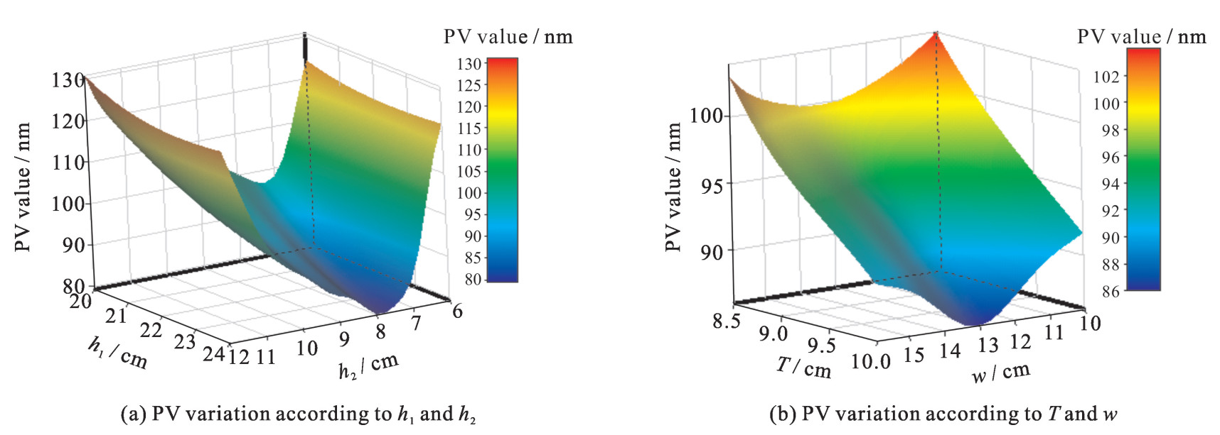 Much deformation of the large aperture mirror by deadweight leads to large PV (peak-to-valley) value of its aperture surface, and it is hard to ensure the point accuracy on laser beams of optical facility. Finite element model is built up to calculate the PV value of the mirror surface in this paper. Moreover, parameters including position and size of erection column as well as the mirror thickness are optimized in order to minimize the PV value of the aperture surface. Both the direct optimization based on finite element model and the optimization based on surrogate model are adopted herein, and the PV value is reduced by 74% of its initial value as a result. In contrast to direct optimization, optimization based on surrogate model conveniently provides the objective variation with design variables and sensitivity analysis as well, which brings much benefit for structure design. In case of numerous and wide-range design variables, it is suggested to firstly decrease the design range according to prior knowledge or low-fidelity surrogate model and then optimize the parameters based on high-fidelity surrogate model within the shrunk range in order to avoid large amount of calculation. Furthermore, a scheme of four-cylinder support is recommended to replace the three-cylinder support for smaller PV value according to the optimization result.