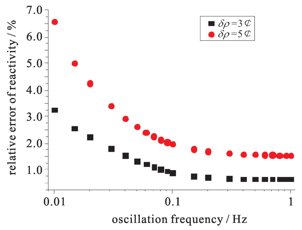 The reactor oscillator method is a method for measuring small reactivity, its measurement precision is related to the selection of experimental conditions. In order to select the optimal conditions of experiment, several major factors which affect measurement accuracy are analyzed by numerical simulation and derivations of formulas. The research shows that the accuracy of reactivity measurement with reactor oscillator method can be improved by choosing suitable amplitude and frequency of reactivity oscillation. According to the analysis result, for the reactor which has short neutron generation time, we should choose high-frequency reactivity oscillation.