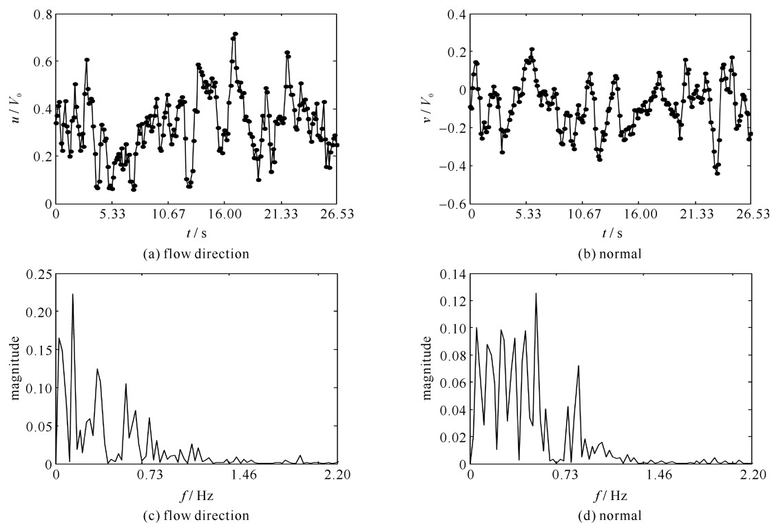 The vortex wave flow field of symmetric channel has a wide range of applications in industrial mass transfer and heat transfer. To further analyze the flow characteristics and variation laws of the vortex wave flow field within symmetric channel under laminar flow conditions, 2D PIV measurements was carried out to obtain data of instantaneous flow velocity vector field, then modes were decomposed and vortex wave flow field reconstructed using proper orthogonal decomposition(POD) technology. According to the reconstruction of the flow field, analysis were carried out for mean velocity profile, pulsation intensity of flow field, velocity and spectral distribution of the characteristics points, etc. of the vortex wave flow field within the symmetrical channel. The results show that the first 15 POD modes could characterize the dominant vortex wave flow field structure, the first and the third modes were a pair of vortices with opposite rotating, while the second mode had a vortex and the wavy mainstream feature. Five vortex core positions were extracted as the flow field feature points. Analysis based on POD reconstructed stream field. Analysis shows that the average speed distribution in the flow direction is parabolic, and the normal average speed distribution is symmetrical; flow pulsation intensity is greatly influenced by the wall, the normal fluctuation intensity distribution exhibits a parabolic shape; the speed pulsation features of feature points 1#, 4#, 5#(closer to the center mainstream) are influenced by mainstream pulsation strength, the velocity distribution of feature points is affected by pulsation speed frequency of 0.15 Hz frequency and the natural frequency of the flow field 0.35 Hz together; the flow velocity of feature points 2#, 3# has a fading trend, the normal speed variation amplitude is large in the early stage.