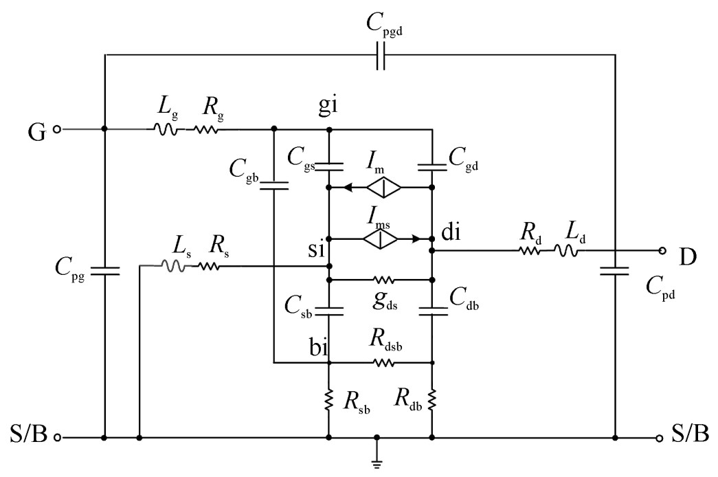 With the development of channel down-scaling of low-voltage low-power CMOS technology, the optimal operation points are shown to shift from the strong inversion toward lower moderated inversion and weak inversion regimes. High-frequency equivalent circuit modeling is a prerequisite for finding the physical mechanism of MOSFET device, and is essential for the HF integrated circuits. Based on the physical structure of 45 nm MOSFET device and its Y parameters analysis, a quasi-static approximate RF equivalent circuit model and its high-precision simplified parameter extraction algorithm is proposed by taking into account the intrinsic physical characteristics of the device, the electromagnetic characteristics of the pin and the parasitic characteristics of the test pad and test interconnects, which are used to describe the bias dependence from the strong inversion and weak inversion regimes. Therefore, the device characterizations offer excellent accuracy, continuity and smoothness under different bias condition, and can be easily implanted into commercial EDA tools. Direct extraction method is performed by S-parameter analysis including the intrinsic and the extrinsic components and the substrate-related effect. Finally, the practicability and the accuracy of the proposed model and its parameters extract algorithm are verified by the consistency comparison of the simulated results by using ADS2013 tool and the measured S parameters. The experimental results show the bias dependence of 45nm MOSFET.