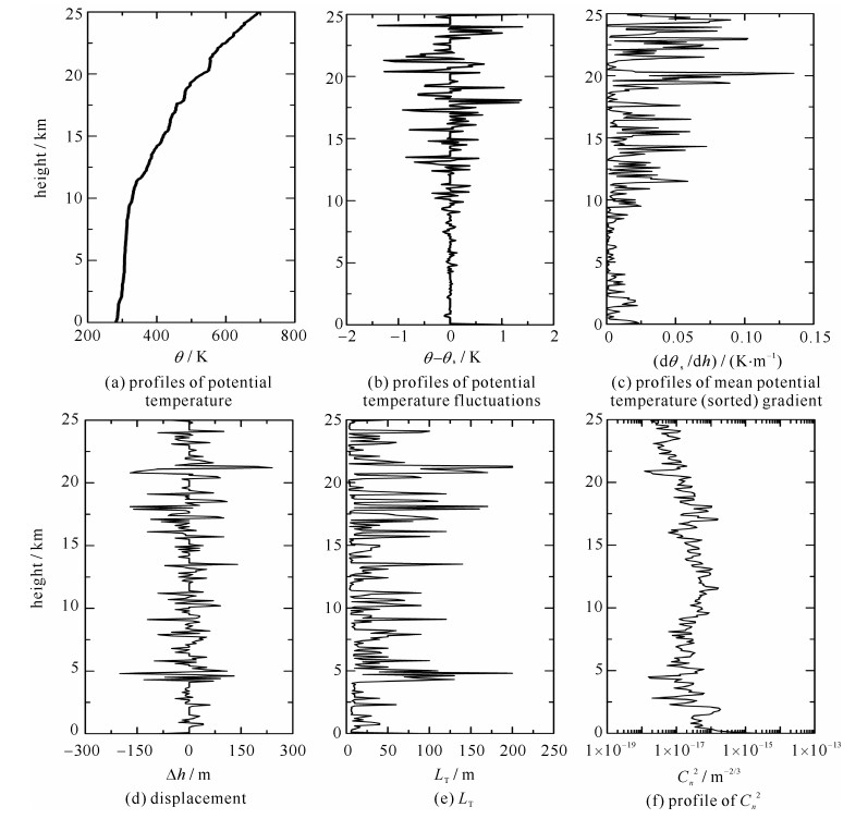 The sounding balloons released from Korla, Maoming, Guangdong and Lhasa, Tibet, have been used to measure the profiles of temperature, air pressure and wind velocity and the refractive index structure constants of the atmosphere.Based on the optical turbulence parameterization of Tatarski theory and the above-mentioned areas sounding data, the atmospheric optical turbulence profiles in three regions, Korla, Xinjiang the coast of Maoming, Guangdong and Lhasa, Tibet, are estimated by using Thorpe scale.Estimated results are compared with measured profiles in these three regions.The estimated values and the measured values are in good agreement with each other in the order of magnitude and the trend of change, and the correlation are69%, 60%, 68%, respectively.In addition, compared with other parameterized methods for estimating turbulence profiles, the Thorpe scale is simple and has less input parameters.