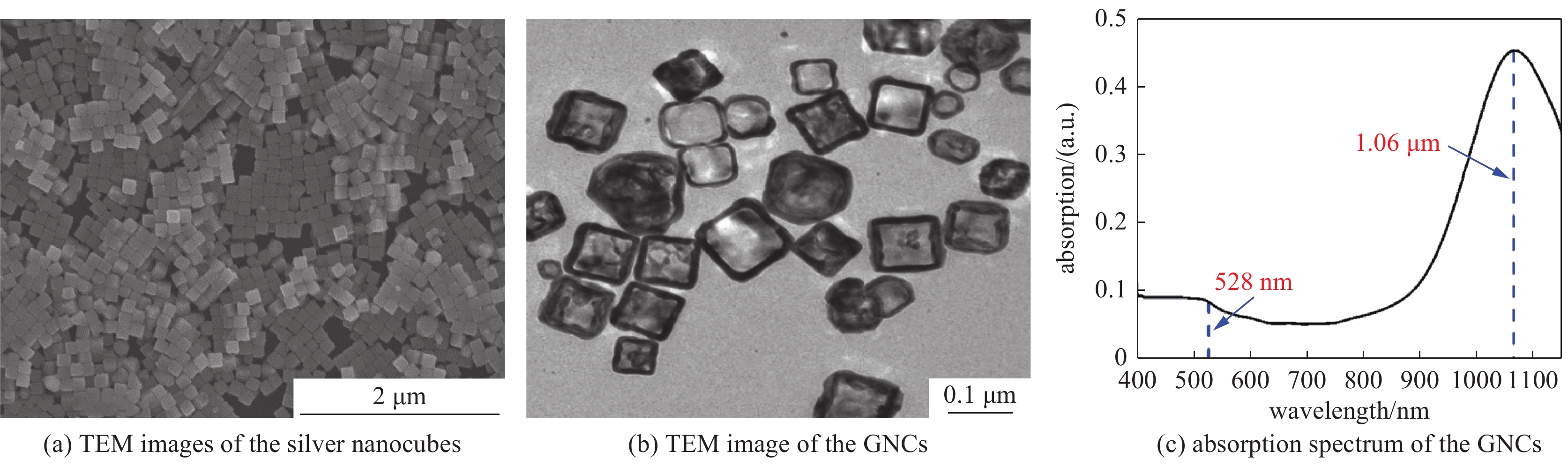Using gold nanocages (GNCs) as saturable absorbers (SAs), passively Q-switched Nd:GAGG lasers at 1106 nm were demonstrated. For the laser at T = 3%, the maximum output power of 98 mW was received under the pump power of 6.70 W, with the shortest pulse width of 436 ns and the pulse repetition rate of 206 kHz. Q-switched pulse with the shortest pulse duration of 370 ns, pulse repetition rate of 170 kHz was achieved at transmittance T=7% under the pump power of 7.69 W with the maximum average output power of 121 mW. These results indicate a great potential of the GNCs as SA in the near-infrared lasers.