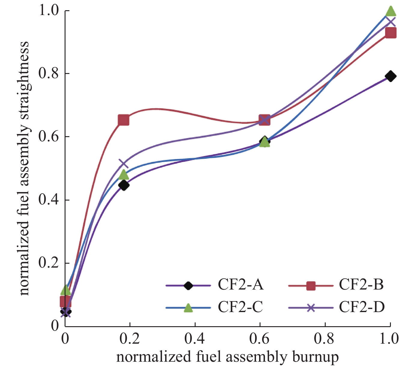 The mechanical performance of CF2 lead fuel assembly and the thermal-mechanical performance of the fuel rod are evaluated considering the irradiation condition of the irradiation program and the criteria are fulfilled. The major in-pile performance of CF2 fuel assembly are studied on the basis of the poolside examination results, including the burnup dependent parameters such as the growth of fuel assembly and fuel rod, the bow of fuel assembly and fuel rod, the growth of grid, etc. The results show that the major in-pile performance of the CF2 fuel assembly has reached the expectations, and the fuel has fulfilled the requirements of the reactor system.
