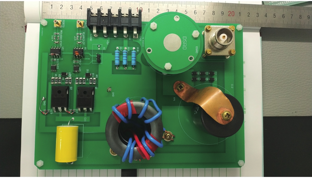 Drift step recovery diode (DSRD) has a great application prospect in pulse power technology for its notably short switching-off time, high repetition rate and large working current. In this paper, a DSRD pump circuit topology based on magnetic saturation transformer is studied. The topology is small, light and reliable. According to the operating requirements of DSRD, a pump circuit was designed. It consists of a power MOSFET primary switch and a magnetic saturation transformer with boost and saturation characteristics. The circuit was simulated by Pspice software, which confirmed the principles of the circuit. Based on the simulation analysis, a prototype was designed and its circuit experiment was implemented. The experiment indicates that when the charging voltage is 800 V, the pulse amplitude on resistor load of 50 Ω is larger than 7 kV, the rise time is less than 4.2 ns (10%−90%) and the FWHM is about 10 ns.