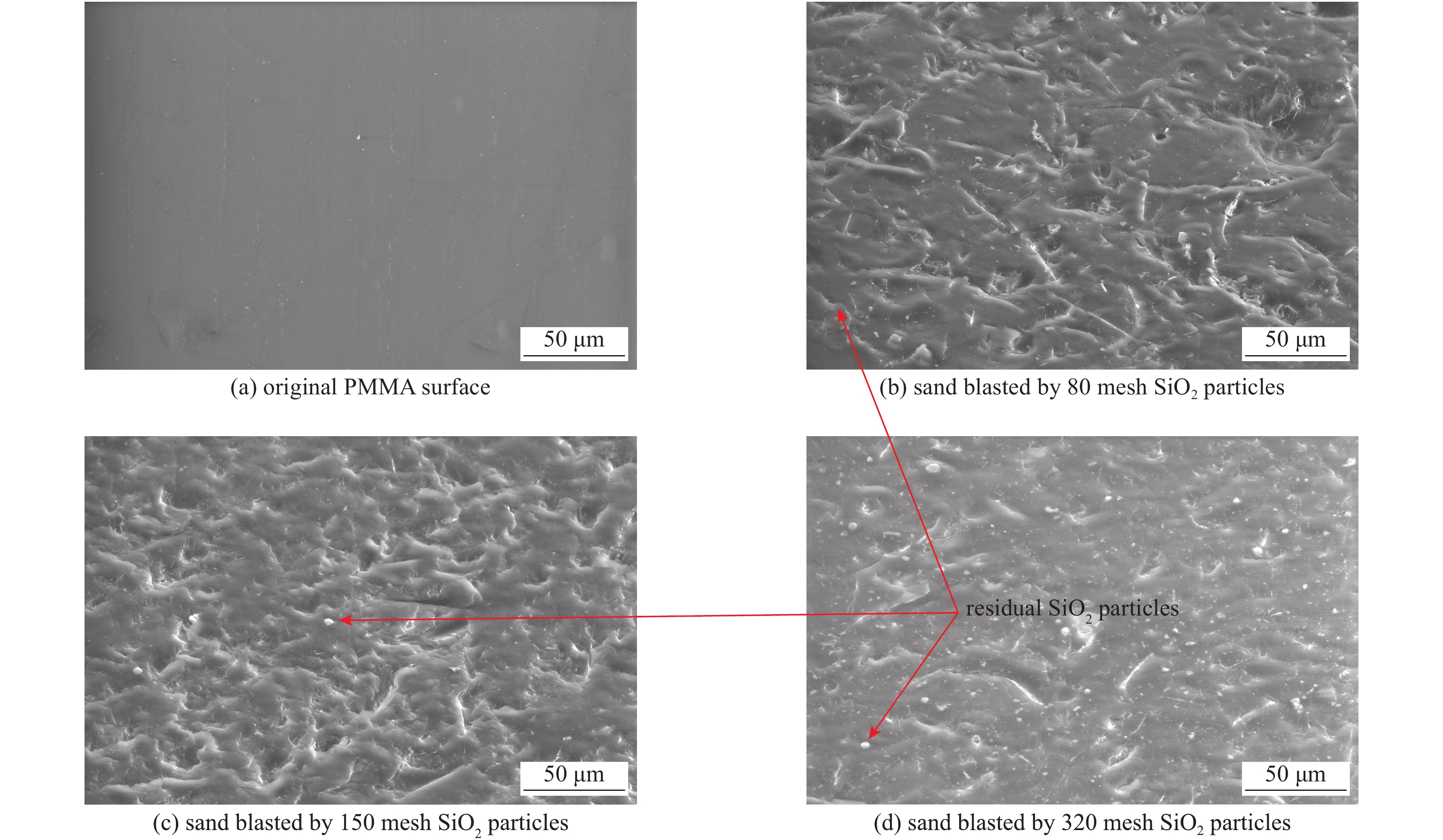 Surface roughening treatment on insulators is an important way to improve their vacuum surface flashover characteristics. However, flashover voltages of the insulators with the same roughness show big deviation because of the poor uniformity of the surface rough structure and bad repeatability of the surface roughening method. To improve the uniformity of the surface roughening and the stability of the voltage-withstanding of the vacuum insulators, sand blasting roughening treatment on the surface of the cylindrical PMMA insulators was studied. First of all, the cylindrical insulators were sprayed on the rotating platform. With the collisions of the spherical micro SiO2 particles carried by the high-speed airflow, rough structure was fabricated on the surface. After the corrosion of the HF acid, residual SiO2 particles were removed, leaving homogeneous rough structure on the surface. The changes of the surface morphology were studied by Scanning Electron Microscope and the surface roughness of the treated insulators was tested on the surface roughness meter. Surface flashover characteristics of the sand-sprayed PMMA specimens were tested on the short-pulsed high-voltage platform. The test results indicated that homogeneously rough surface was prepared by the sand blasting treatment and the surface flashover voltages of the treated insulators were improved steadily. Compared with the untreated PMMA specimens, flashover voltages of the sand blasted insulators were improved approximately 80%.
