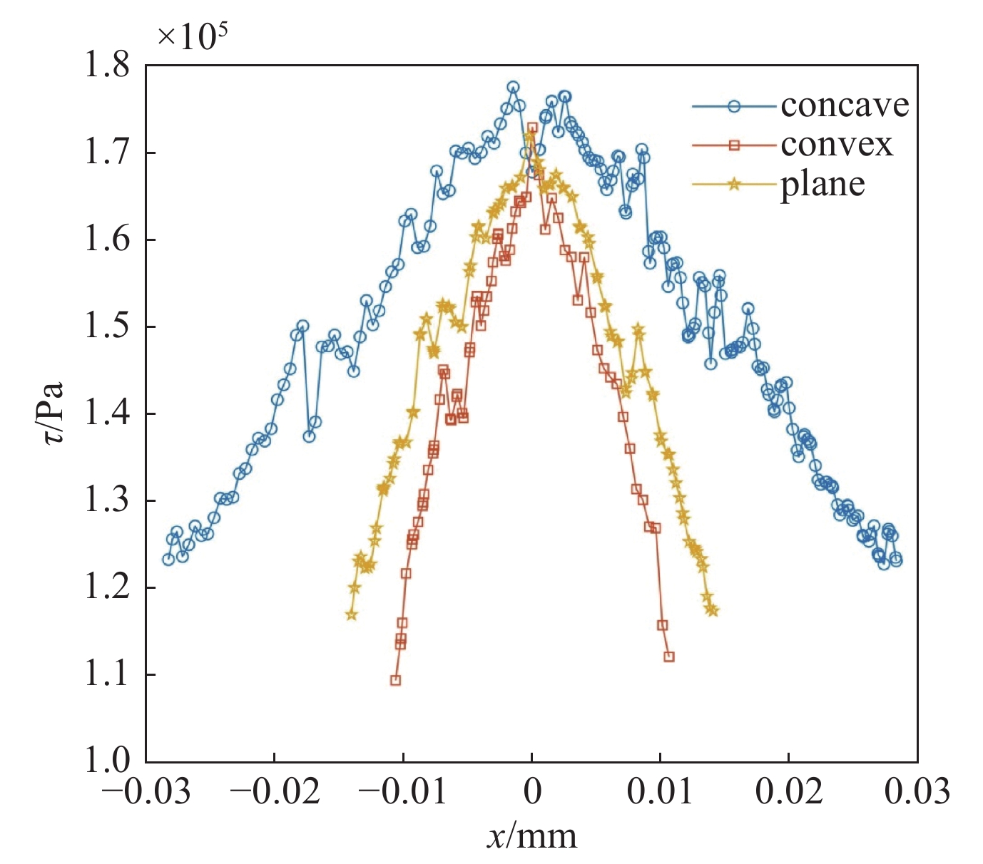 In the actual working process of magnetorheological polishing, the difference of the geometric characteristics of the polished area will have a great influence on the key parameters of the flow field creation. However, there is still a lack of research in this area, so this article establishes a three-dimensional model and experimental simulation for this problem. In studying the relationship between the geometric characteristics of the polished area and the key parameters of the flow field creation, first change the shape of the polished area to observe its influence on the shear stress and pressure in the flow field creation; when the shape of the polished area is the same, change the size of the polished area and observe its effect on the shear stress and pressure in the creation of the flow field. It is found that when the shape of the polished area differs, the shear stress is the largest when the polishing area is concave, while it is the smallest when the polished area is convex. When the polished area is convex, the shear stress on both sides of the polished area increases as the curvature of the polished area increases; when the polished area is concave, the shear stress on both sides of the polished area increases as the curvature of the polished area increases. When the shape of the polished area is different, the pressure is maximum when the polished area is concave, and the pressure is minimum when the polished area is convex. When the shape of the polished area is convex, the pressure at the polished area increases as the curvature of the polished area increases; when the shape of the polished area is concave, the pressure at the polished area decreases as the curvature of the polished area increases.
