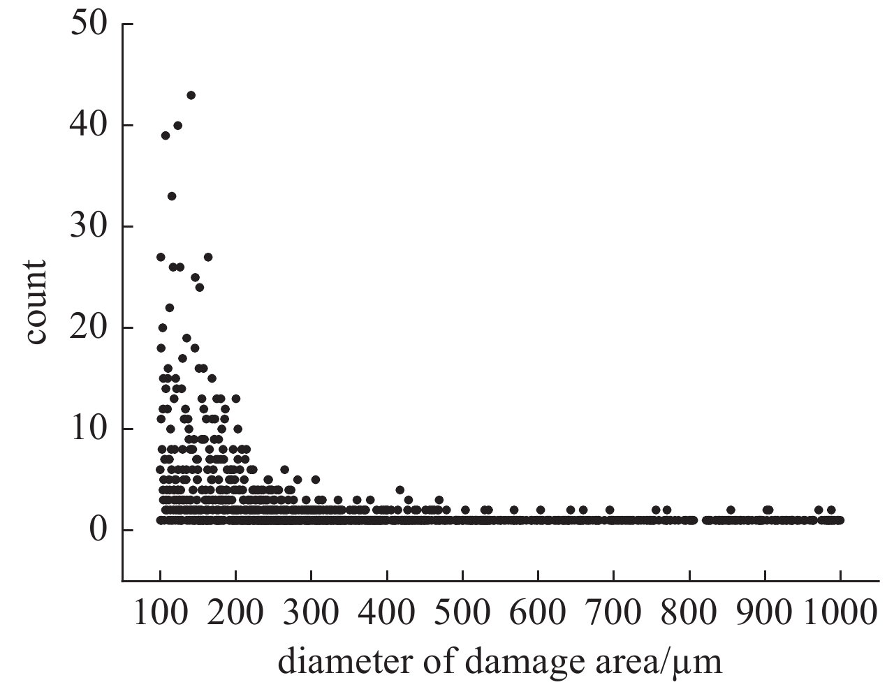 To establish the effective evaluation about damage properties of large-aperture and high-energy optic components, we studied the statistics of the surface damage of the DKDP component. We analysed and summarized various kinds of damage distributing in surface of the optic component by step-by-step shooting, merging images and counting damage pits. We investigated correlation distribution of damage types and irradiation conditions using statistics of surface damage data, theoretical calculation and demonstration of similar experiment. It is found that positions of damage pits are closely relevant to distribution of energy density of laser beam (3ω). When the energy density exceeds 6.7 J/cm2, the distribution of energy density of the laser beam can be Gaussian. On the contrary, when energy density is less than 6.7 J/cm2, the distribution of energy density of the laser beam can be uniform. Our study could provide a valuable reference for evaluating characteristics of damage to optical component working under irradiation in large-aperture high-energy laser. It is also reterable in operating and maintaining large-aperture high-energy laser facility.