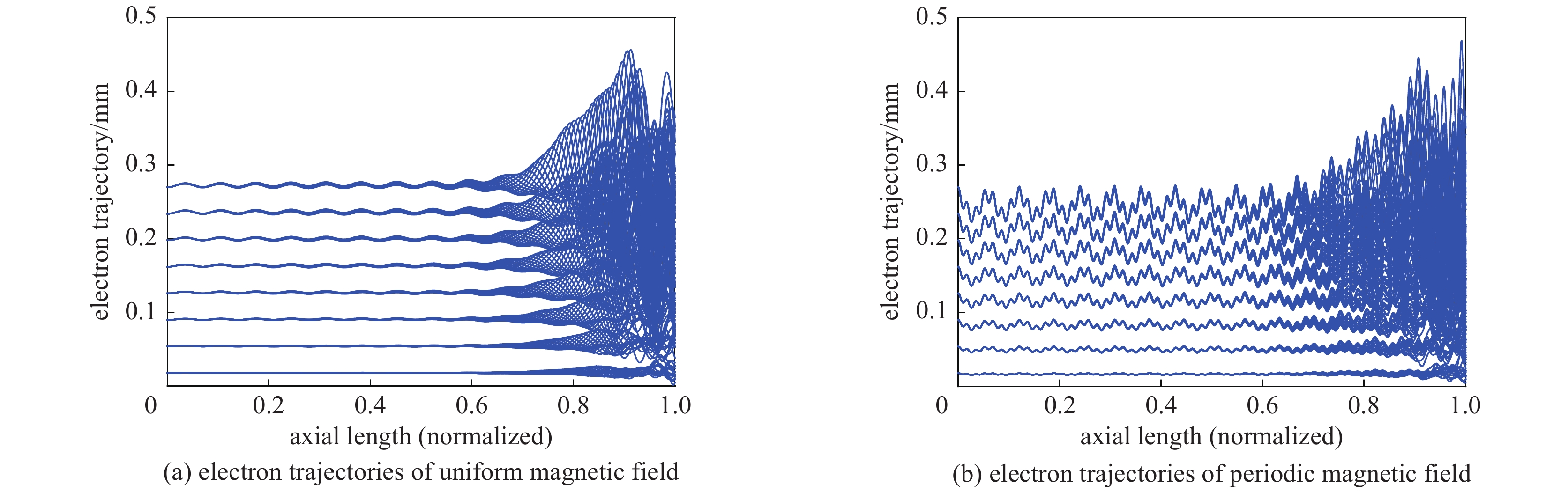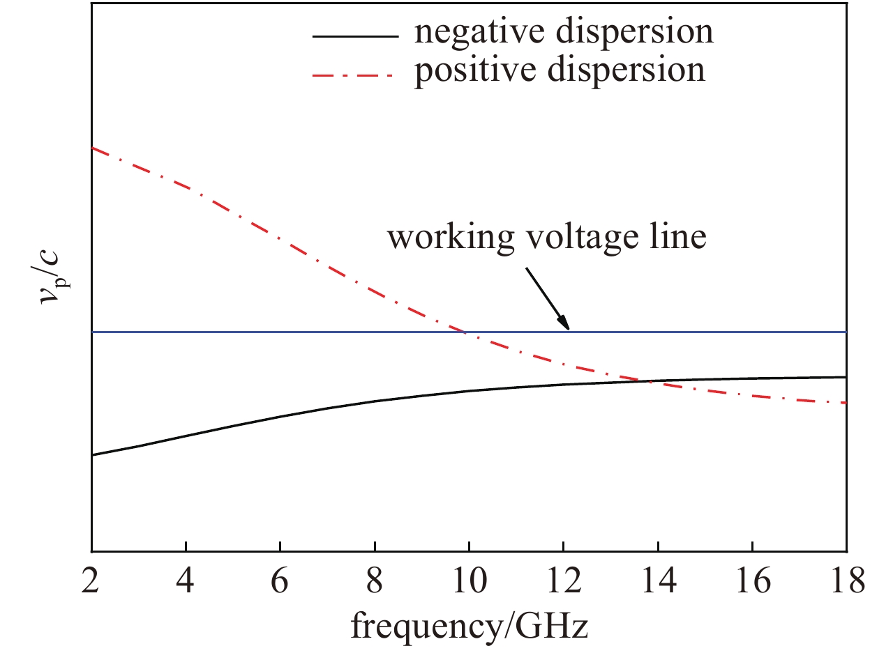 The high-frequency slow-wave structure of 2−18 GHz ultra-wideband traveling-wave tube (TWT) is studied and analyzed to meet the requirements of modern information warfare for TWT. Based on the traditional wideband TWT, the positive dispersion characteristics of non-fin loading section were introduced to realize the 2−18 GHz ultra-wideband high-frequency slow wave structure, with the maximum bandwidth of 9∶1. Results show that the output power of fundamental wave is up to 100 W, the second harmonic suppression ratio is better than −3 dBc in the full frequency band, and the second harmonic suppression ratio is better than −5 dBc at 2 GHz, which provides a theoretical basis for the design of ultra-wideband high-power devices. At the same time, the spiral pitch at the output end is adjusted to a positive gradient distribution to further optimize the low frequency secondary wave suppression ratio and improve the saturation output power of the high frequency band.
