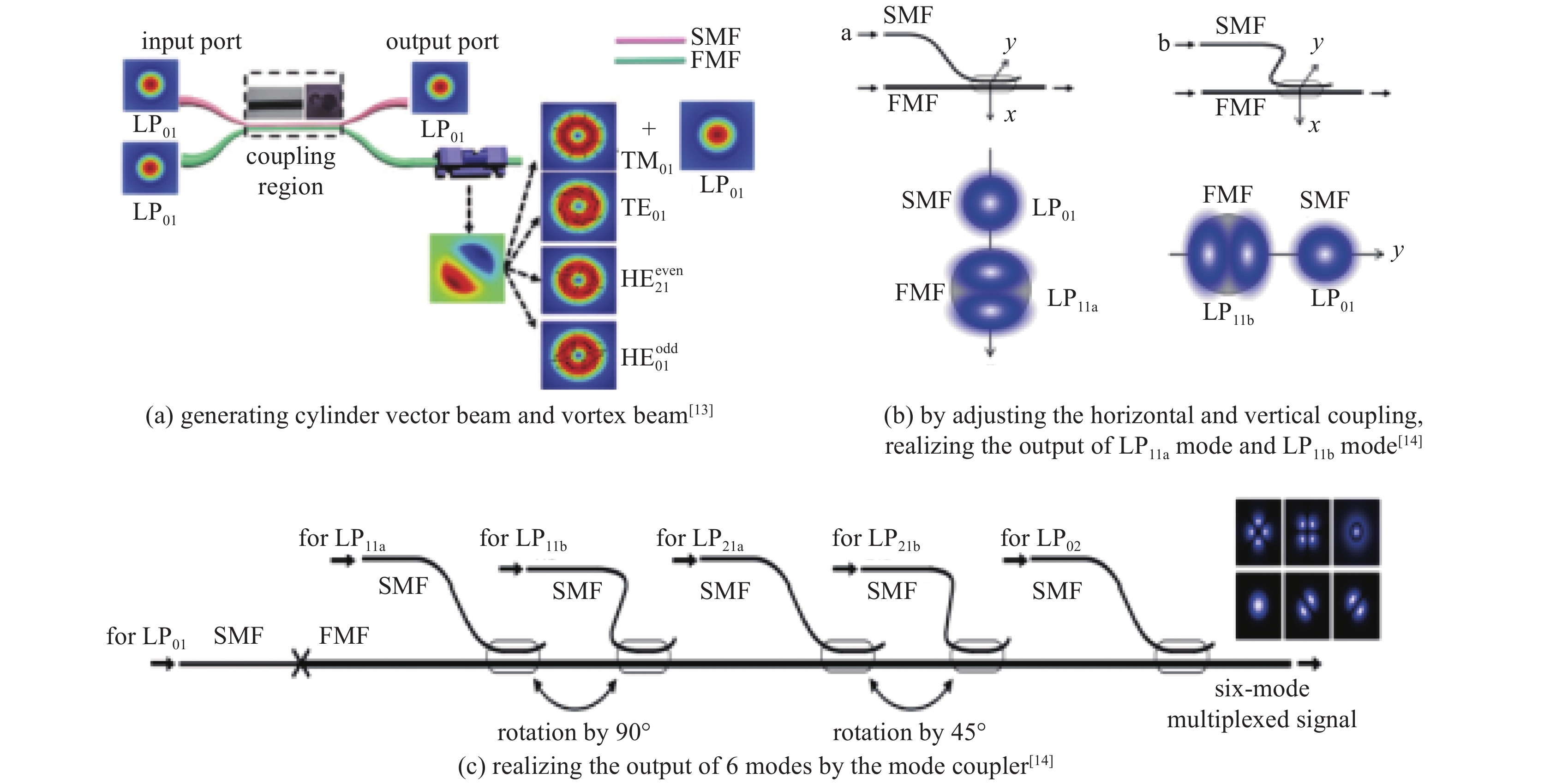 In fields of practical applications such as the optical fiber communications, optical fiber lasers, and optical fiber sensinIn fields of practical applications such as the optical fiber communication, the optical fiber laser, and the optical fiber sensing, it is necessary to focus on the mode problems in optical fibers. Mode division multiplexing is an effective method to improve the information capacity of optical communication. Interference between modes is the basic method for the most of optical fiber sensing. Mode controlling technique is one of the key technologies for beam quality control of high-power fiber lasers. Therefore, research on the theory of optical fiber modes, modes’ generation, modes’ conversion, and mode characterization technology are of great significance and practical application value. In this paper, we discuss the mode and beam quality of the optical fiber, analyze the methods of multiple modes’ generation and conversion, and summarize the mode characterization methods by means of incoherent, coherent and low-coherence measurement. Currently, the fiber mode characterization is a hot research topic. Among a variety of characterization methods, the spatial and spectral imaging method (S2) and the spatial and spectral double Fourier transform method (F2) have significant advantages. Without knowing the geometric parameters of the fiber in advance, we can obtain characteristics such as the mode field distribution, the mode power ratio, and the group time delay. Results indicate that the F2 method is better for characterizing mode field distributions of high-power fiber lasers.