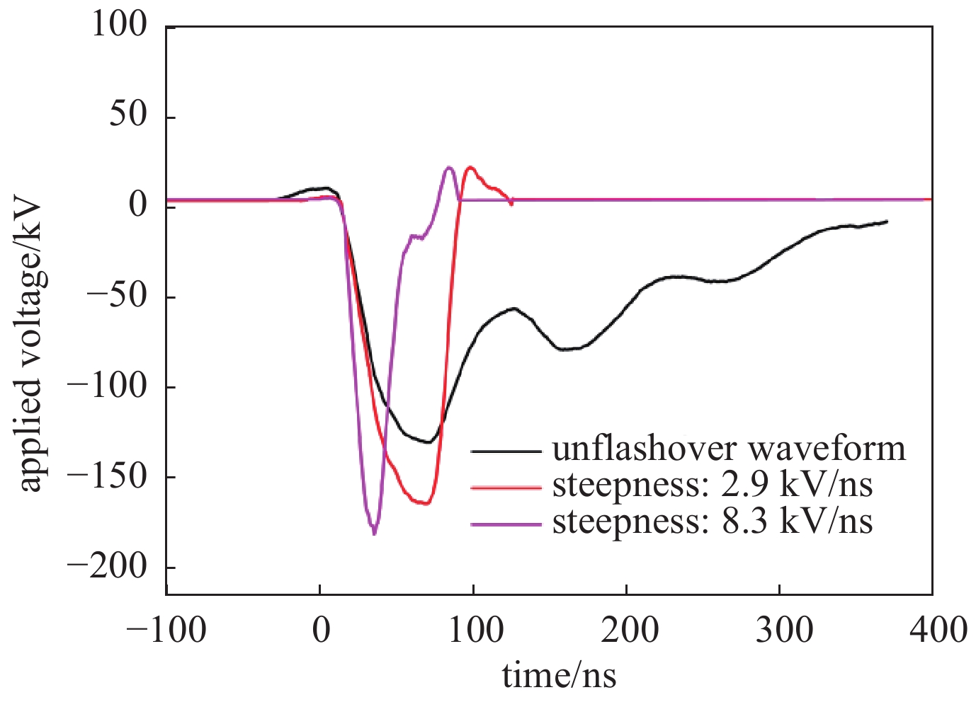 Epoxy/Al2O3 composite is widely used as insulating material in power equipment. However, its performance in SF6 gas under fast-rising pulse is little studied, which limits its application in guiding insulation design of pulse power devices. To investigate the insulation characteristics of epoxy/Al2O3 composite under nanosecond pulses, the flashover characteristics of this material are studied under pulse voltage with rise time of about 52 ns. The results show that its electric field of flashover is much higher than pure epoxy’s, and the flashover voltage is in accordance with Weibull distribution. The experiment shows that the flashover voltage increases significantly with the increase of the pulse steepness, from 108 kV at 5.8 kV/ns to 226 kV at 20.5 kV/ns. As pulse steepness increases, the flashover delay time decreases rapidly first, then tends to be flat. The surface morphology of the flashover area of the samples shows that the flashover channel is obviously carbonized and flashover discharge has a destructive effect on the composite material.