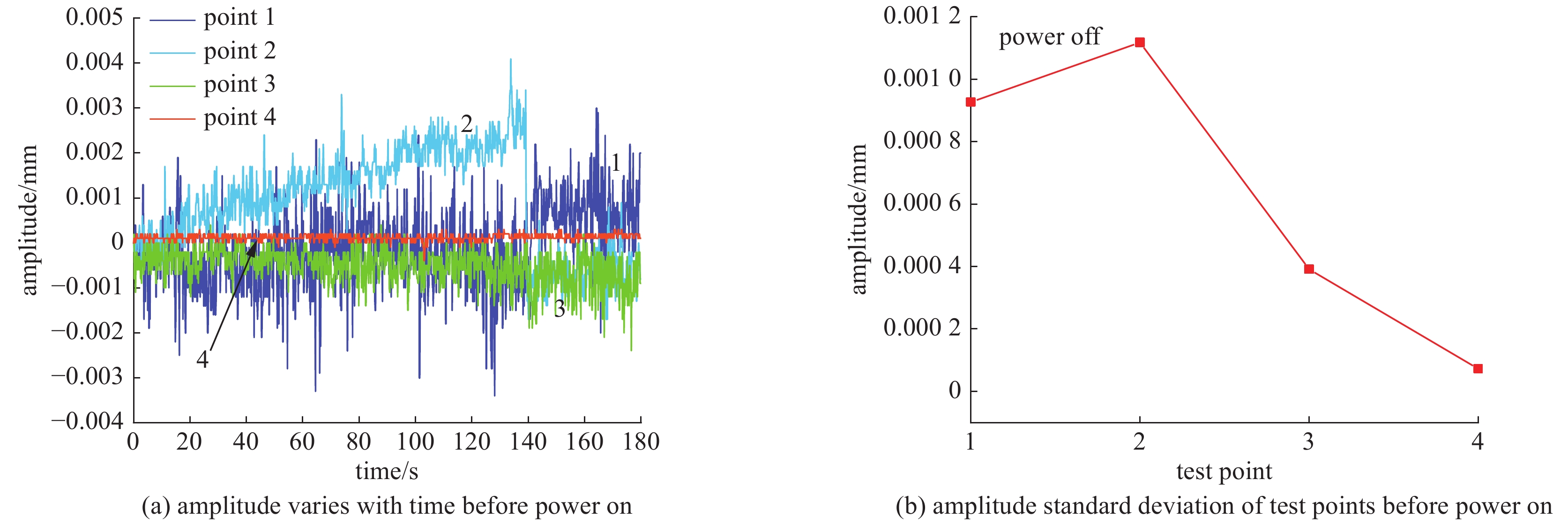 This article presents, the research about the vibration of the space environment simulation and research infrastructure (SESRI) scanning magnet for Harbin Institute of Technology (HIT), which uses laser displacement sensors to measure the amplitudes at the key test points. The purpose of the test is to analyze the factors that influence the vibration and the way to block or absorb vibration. The collected data show that when I=450 A, f<140 Hz, the magnet has no obvious vibration. Current and its frequency, especially frequency, are the main factors affecting the vibration. The scanning magnet for SESRI is resin casted with coil and iron core designed to be integrated. Compared with the previous design, the vibration is obviously reduced. As the conclusion, the rational design inside the magnet can block vibration, which can provide a reference for designing new magnets.