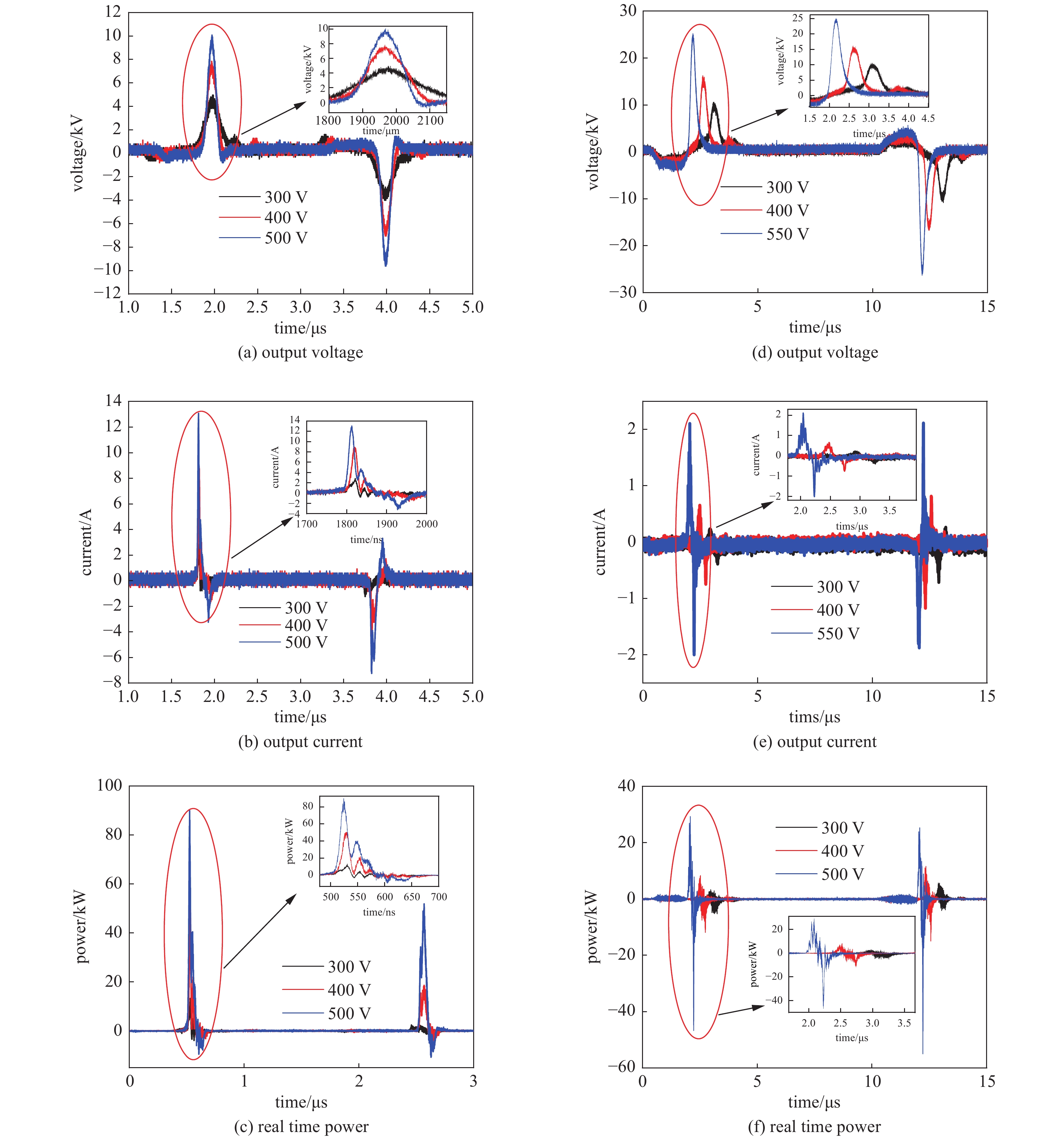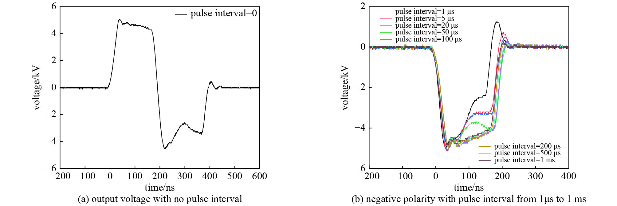The experimental platform of bipolar high-voltage pulse power supply with an output voltage amplitude of 0−20 kV and pulse repetition rate of 0.25−20 kHz is constructed. The influence of parasitic parameters of the pulse transformer and load characteristics on the output pulse waveform is studied. By the complex frequency domain analysis method, the effects of parasitic parameters of the transformer on the rising edge, flat top, and falling edge of the output pulse wave are analyzed theoretically, which are further indirectly verified by changing the winding scheme of the transformer. It is found that the larger the distributed capacitance and leakage inductance of the transformer are, the longer the rising time and falling time of the voltage pulse are, and the larger the overshoot voltage is. An optimization winding scheme of the pulse transformer is proposed in that the secondary winding is evenly and densely wound, the primary winding is evenly and loosely wound, and the number of turns is as high as possible. Furthermore, the influence of load characteristics on the output high-voltage pulse waveform is analyzed. (1) When the resistance increases (5−50 kΩ), the overshoot voltage increases, and the rising time and falling time of the voltage pulse decreases. (2) When a resistor is connected in series with small capacitors, the overshoot voltage increases significantly. If the capacitance is higher than a certain value, the output pulse waveform will be the same as that in the case of a pure resistor. (3) When a resistor is connected in series with an inductor, the falling time of the voltage pulse becomes longer.